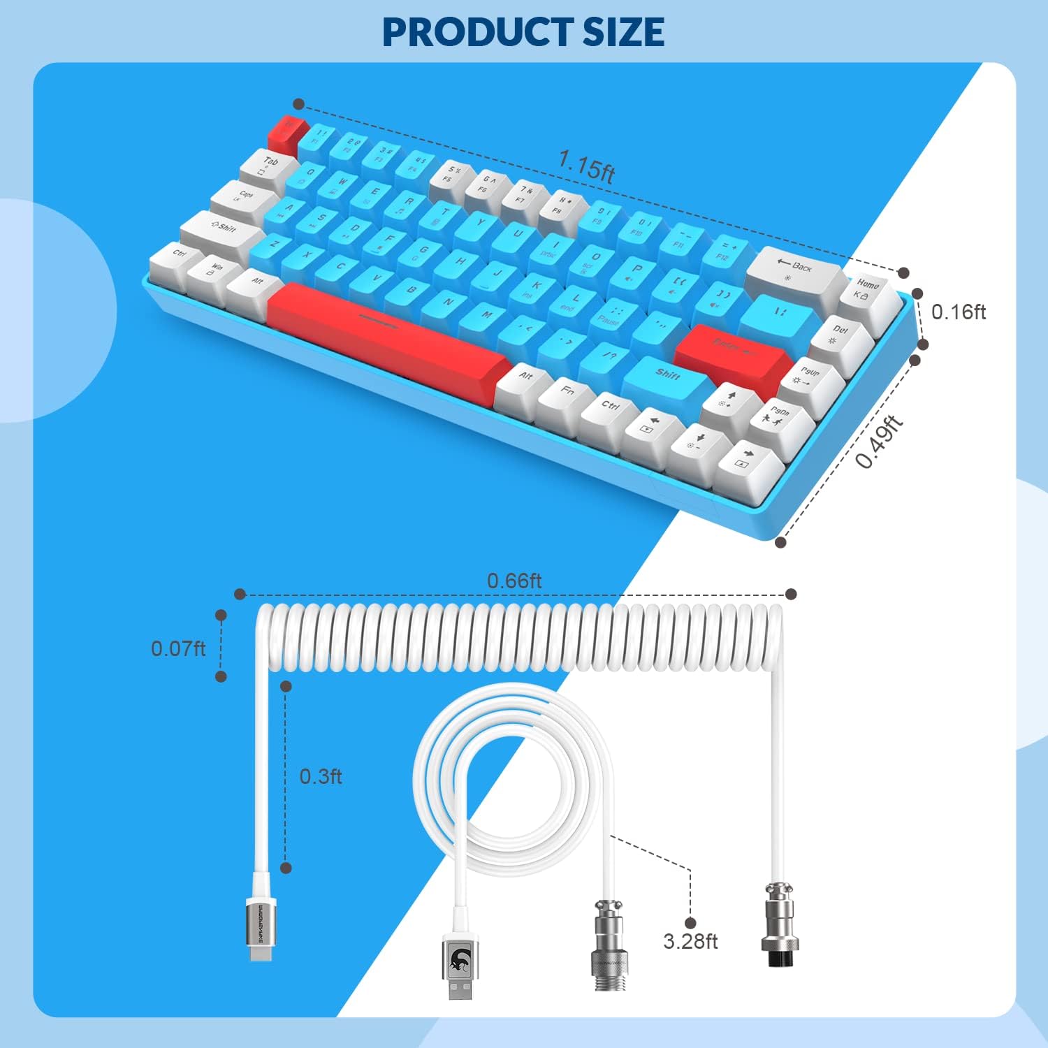 YINDIAO T8 60% геймърска клавиатура, 68 клавиша, компактна, кабелна, механична мини клавиатура с 18 Chroma RGB подсветка, син превключвател, USB-C спирален кабел за клавиатура, за PC, PS4 синя