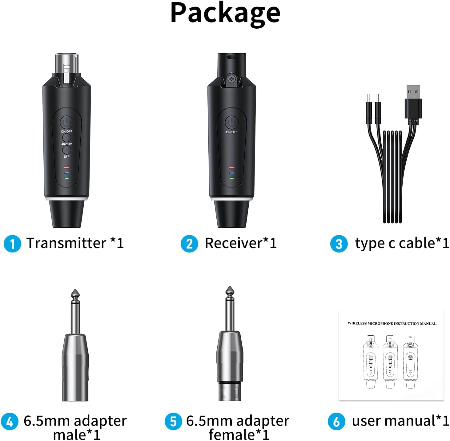 Yinker 2.4G XLR микрофон безжичен предавател приемник 1 към 1 безжичен микрофон за динамичен микрофон кондензаторен микрофон 50-100 м за пеене / публично говорене