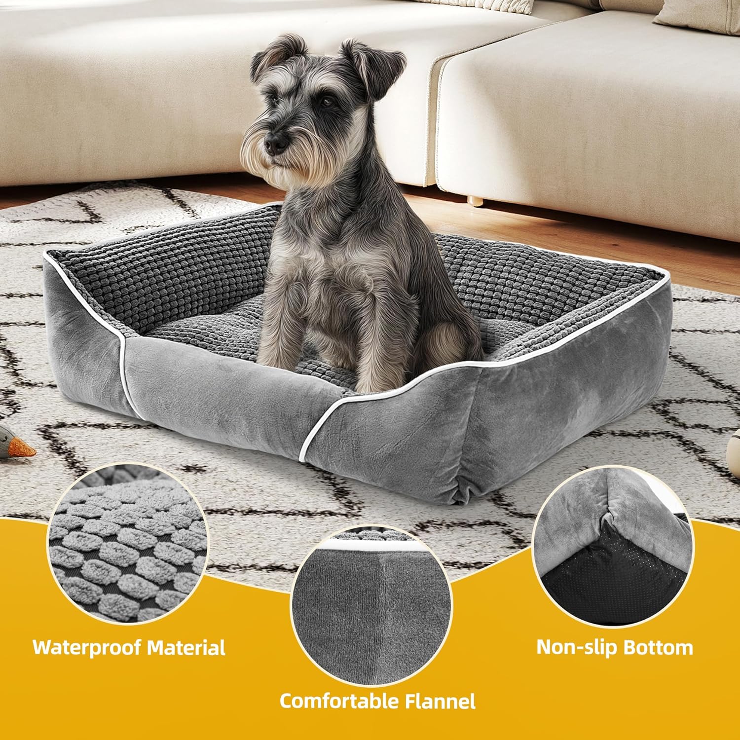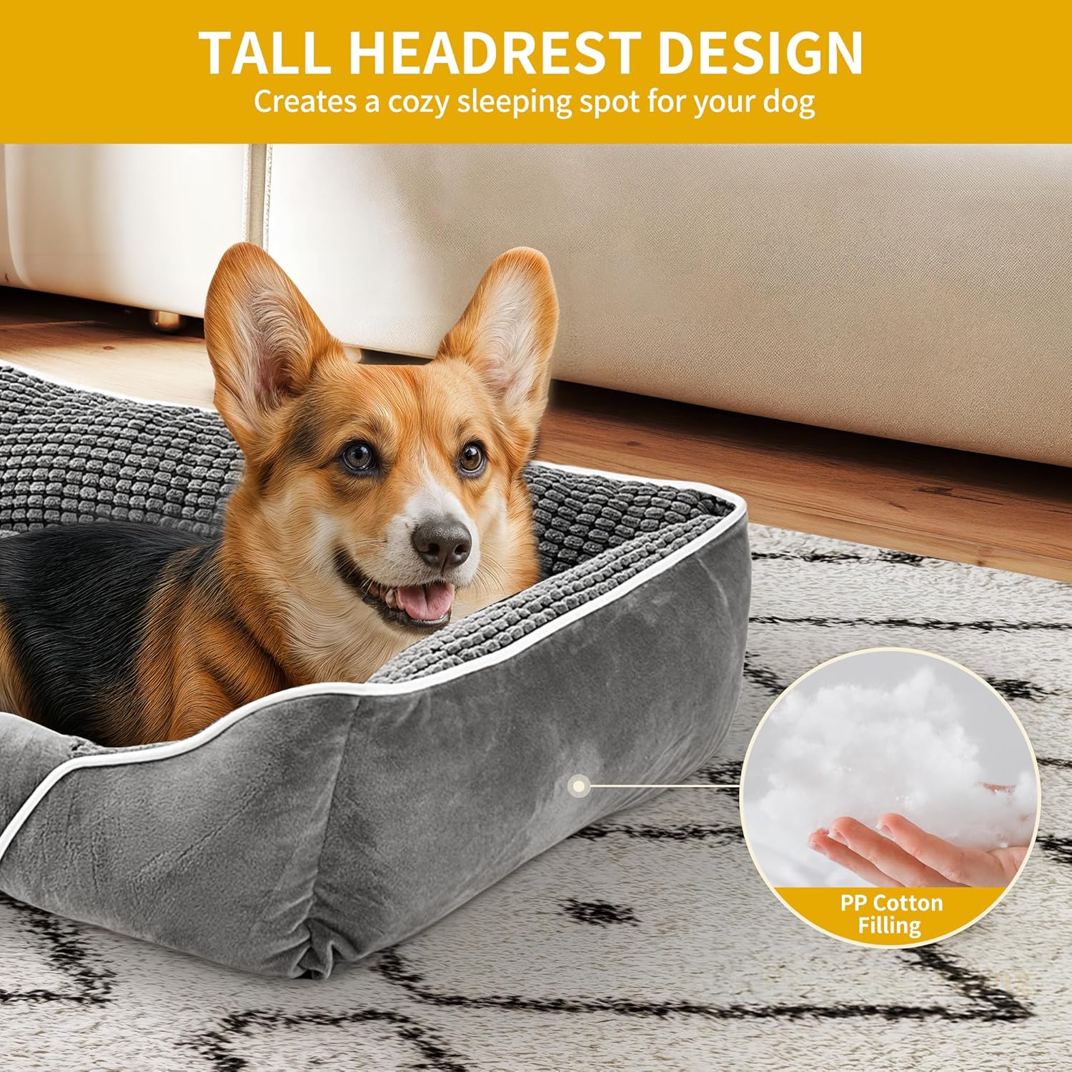 YITAHOME Кучешко легло за средни кучета, 51 x 48 см, Кошница за кучета, Ортопедично кучешко легло, Ергономичен диван за кучета, Калъф, който може да се пере, Повдигнати ръбове, Неплъзгаща се долна страна