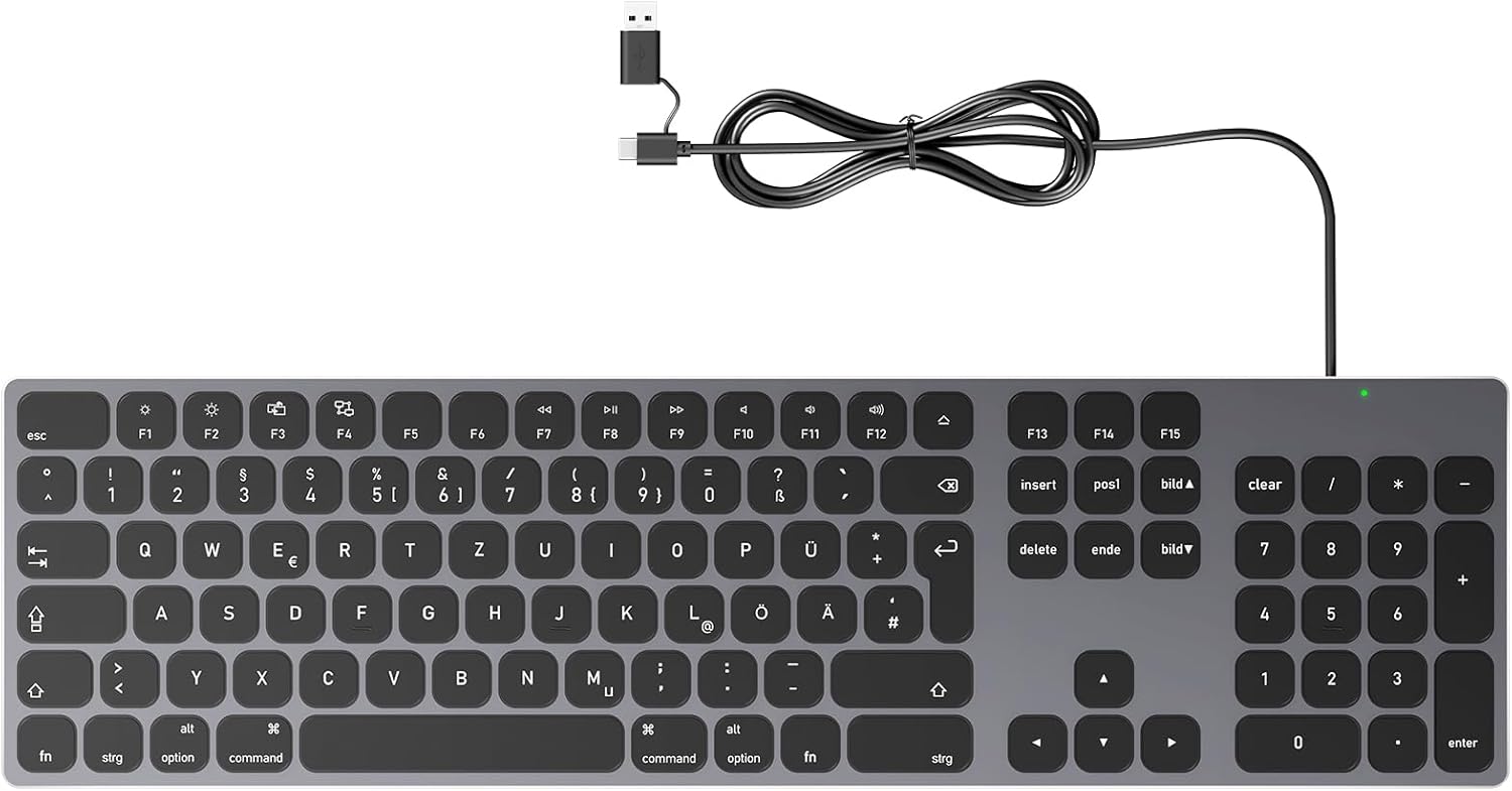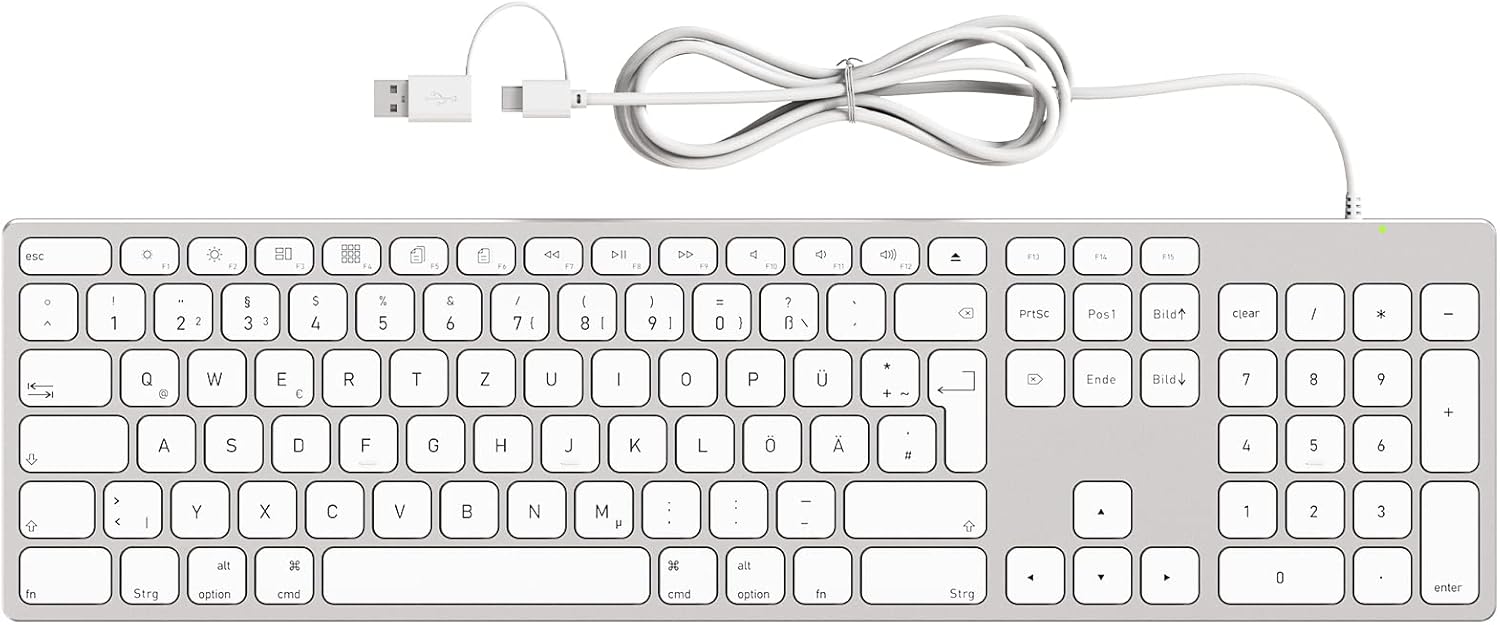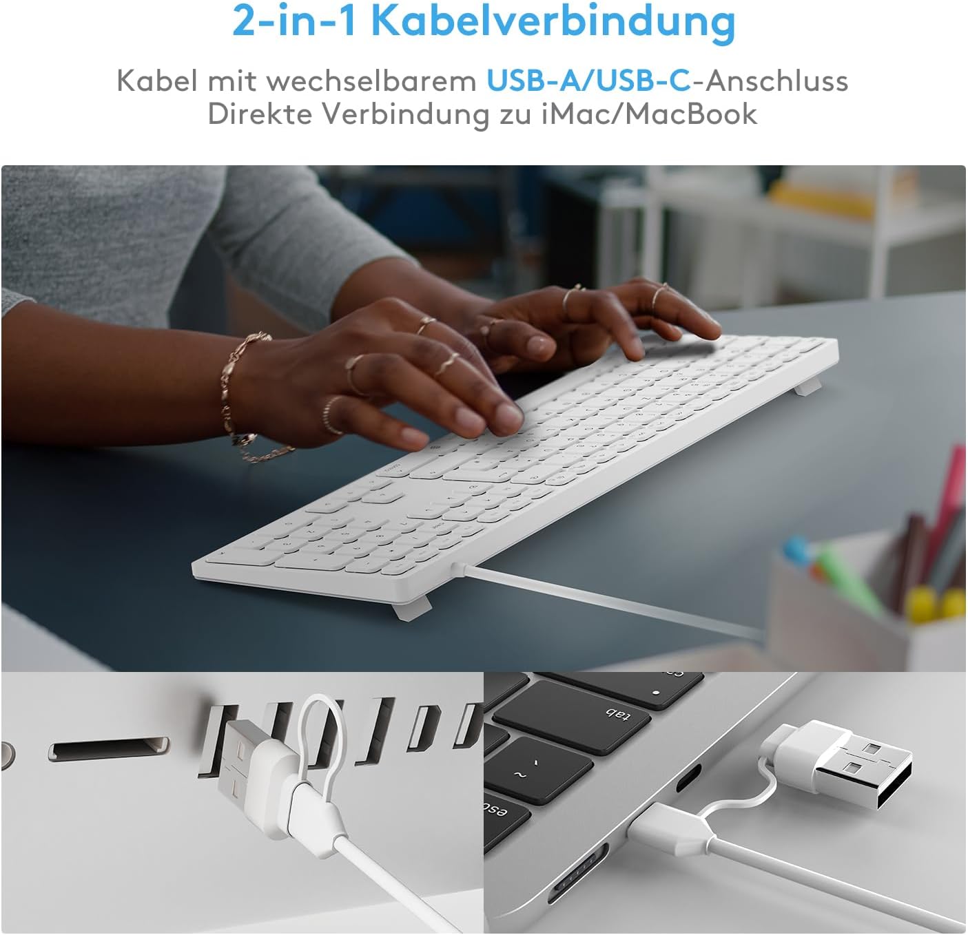 The interchangeable USB-A and USB-C port (Type-C) ensures that the keyboard works not only with iMac/iMac Mini computers, but also with MacBook Pro/Air laptops.