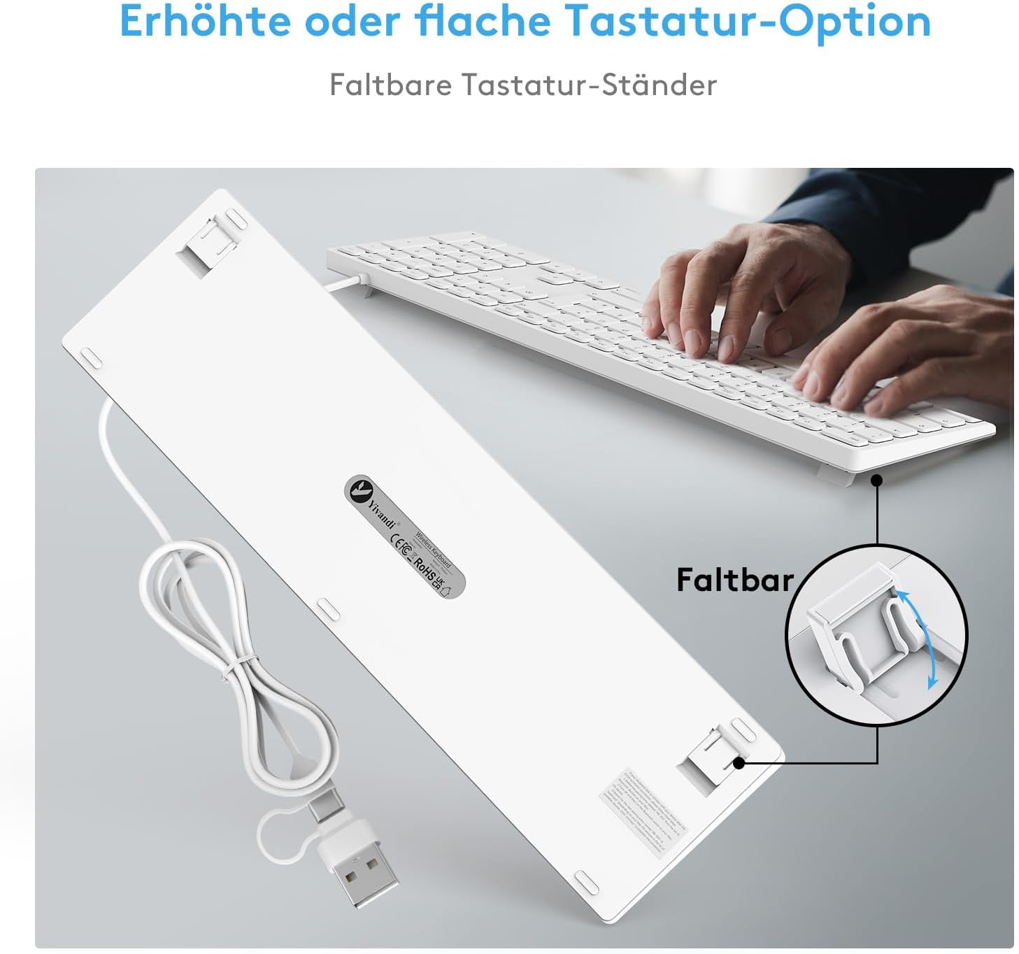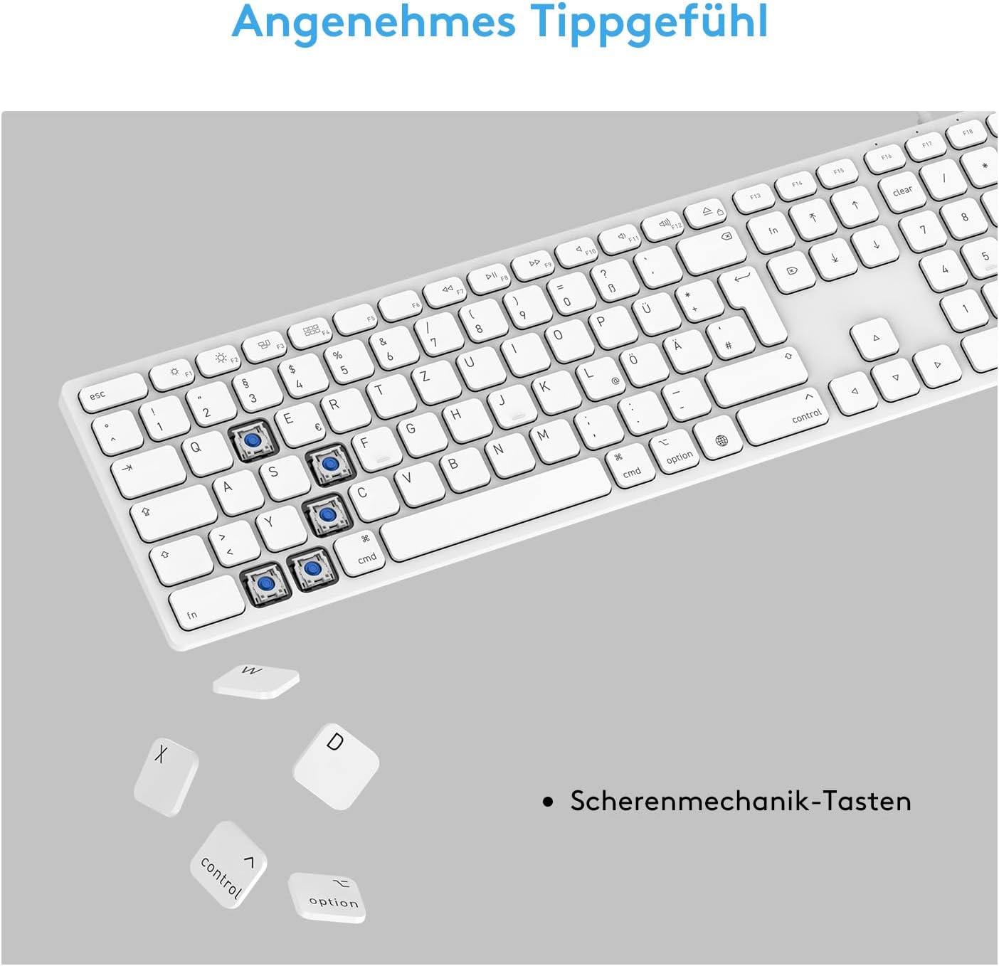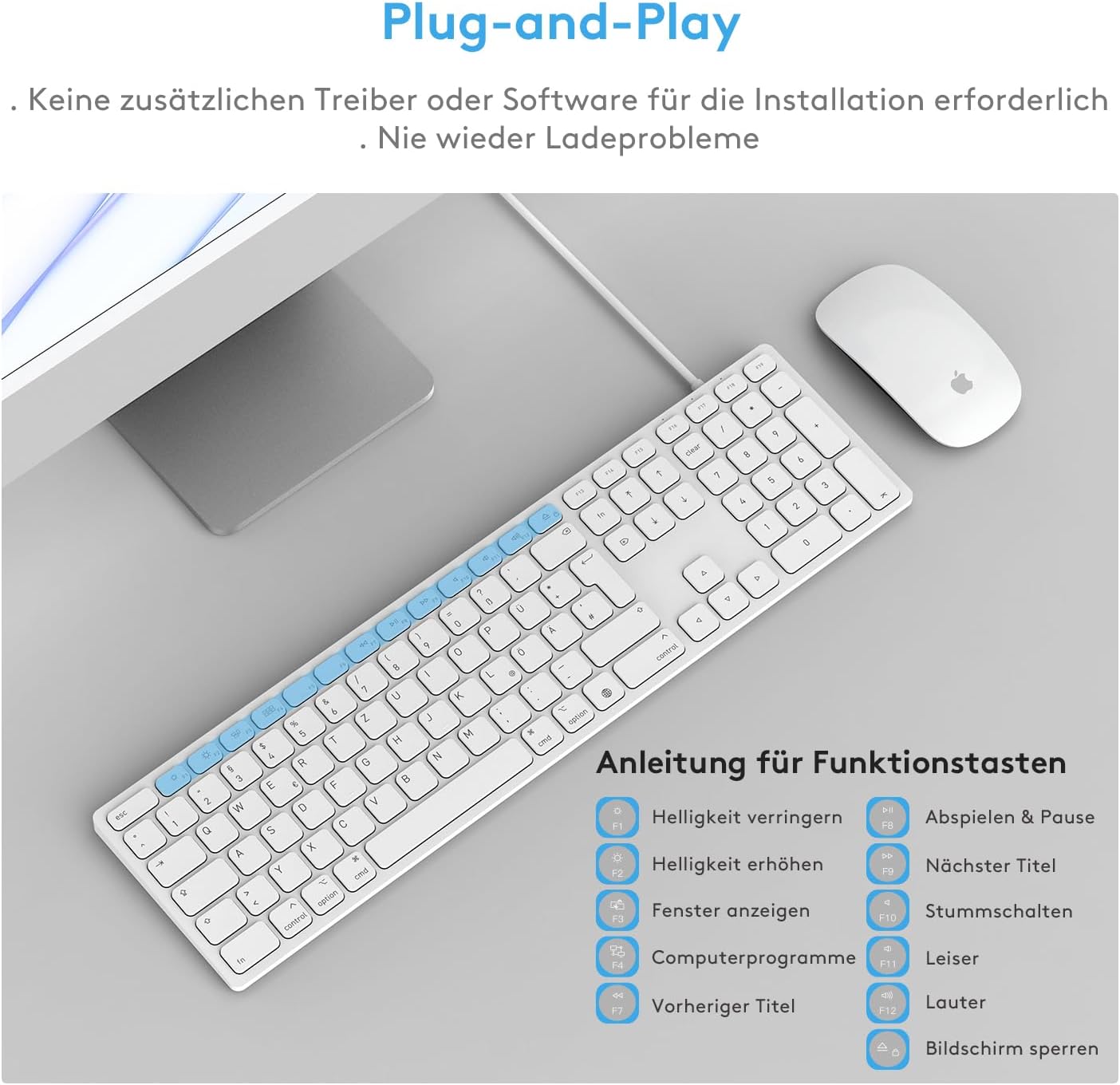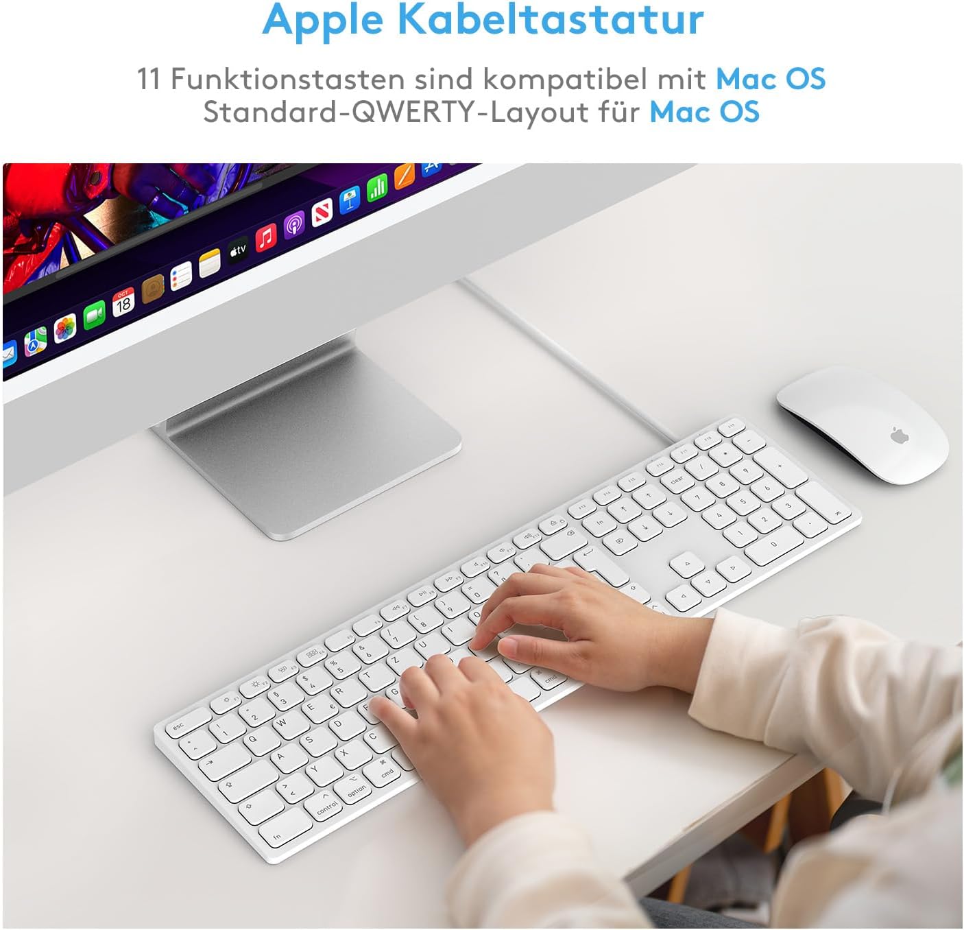 Подредба на клавиатурата: Qwerty (немска) Размери на продукта: 16,6 инча x 4,47 инча * (0,19 ~ 0,4) инча Тегло на продукта: 0,4 паунда Съвместимо устройство: iMAC/Mac Mini компютър или MacBook Pro/Air лаптоп (PS: Ако клавиатурата работи с Windows OS, но някои от клавишните комбинации не са налични) Работни клавиши: 106 клавиша. Съдържание на кутията: 1 x ръководство (английски език не е гарантиран)