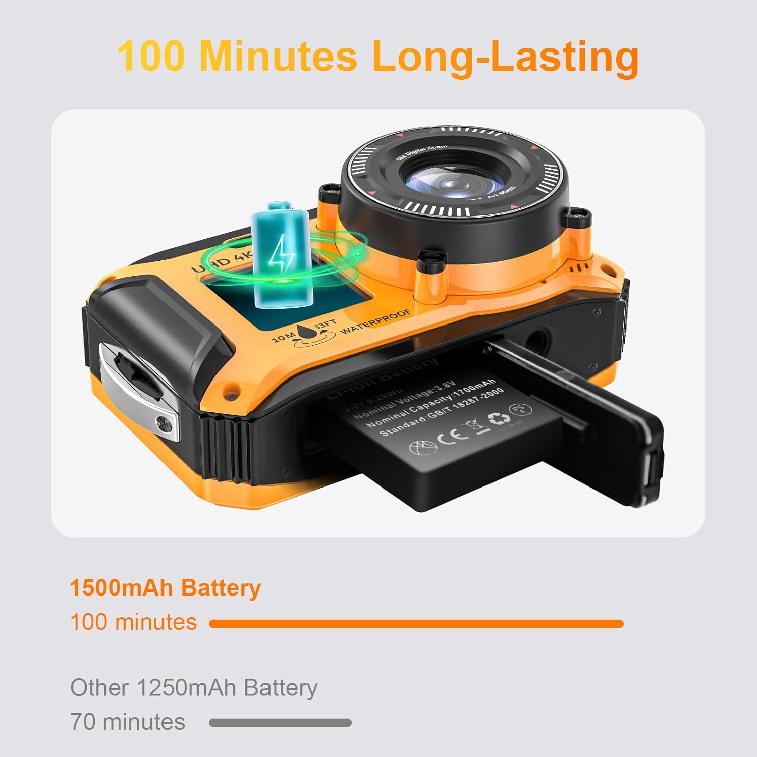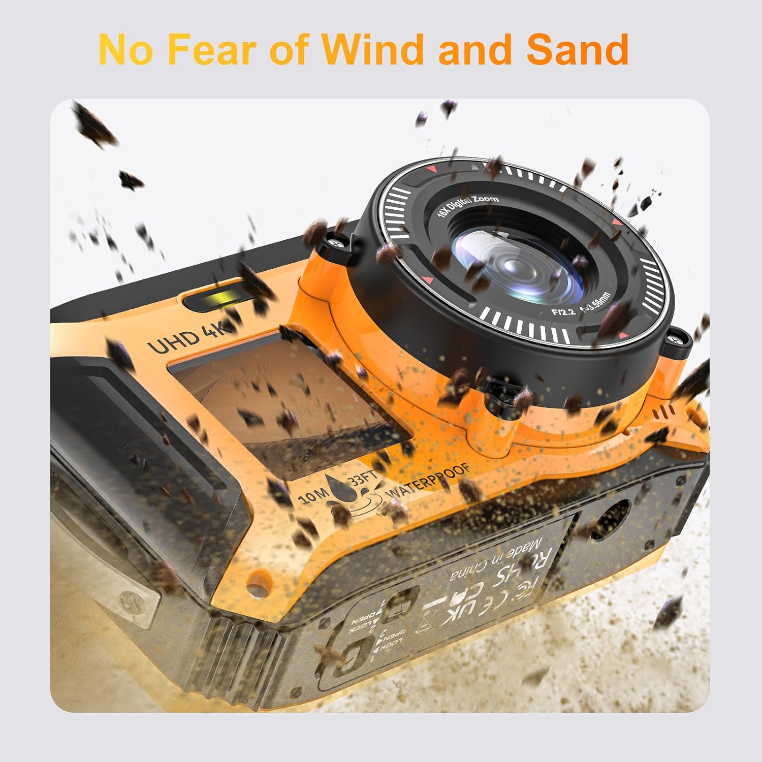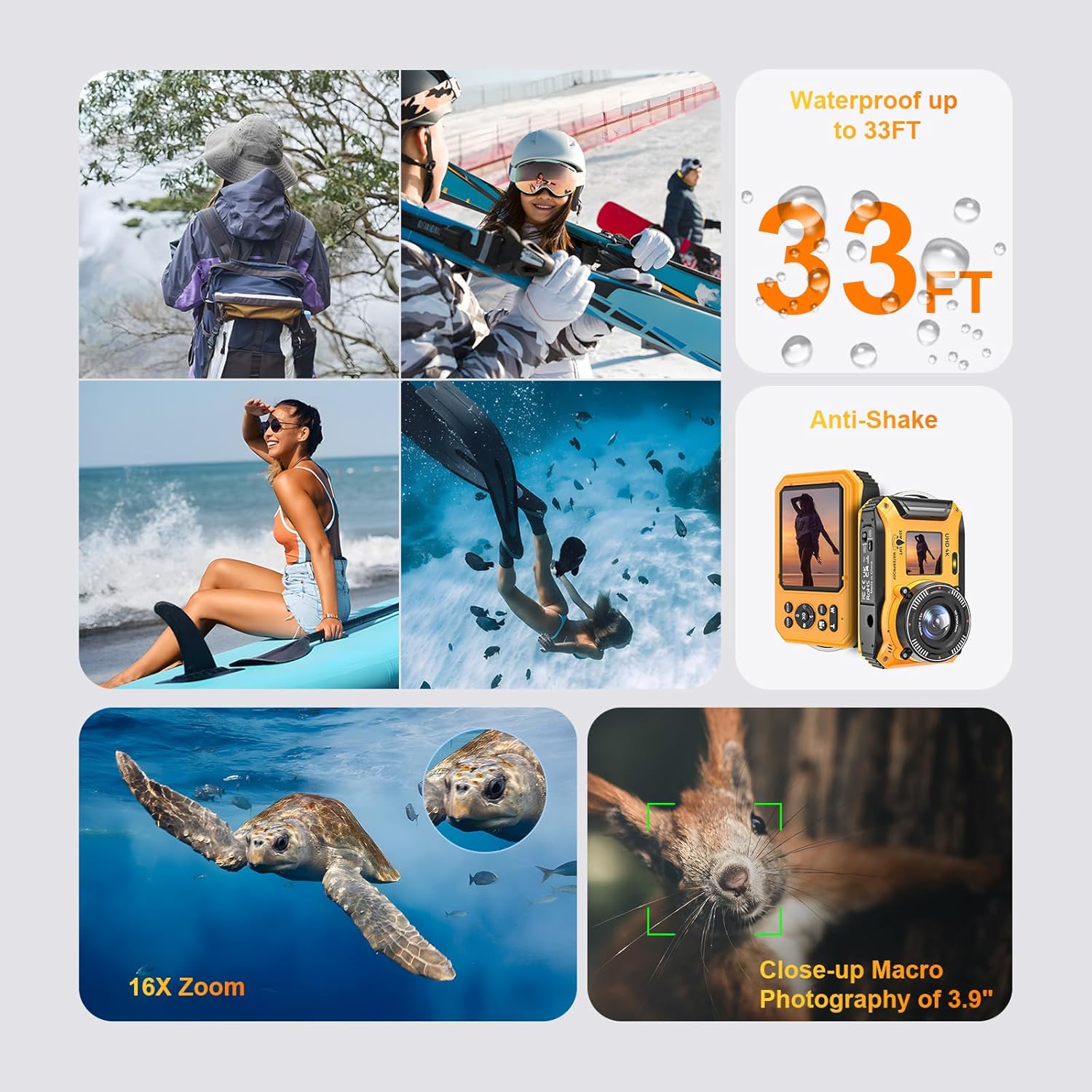 • 4K UHD видео и 64MP снимки с висока резолюция: Запечатайте всеки вълнуващ момент със зашеметяващи 4K Ultra HD видео записи, а снимките с висока резолюция от 64MP осигуряват безпрецедентно ниво на качество на изображението! Независимо дали изследвате под вода, наслаждавате се на ден на плажа или се впускате в приключение на открито, този цифров фотоапарат документира всяко преживяване перфектно. С ярки цветове и фини детайли, вашите снимки и видеоклипове ще оживеят. Лесен е за употреба и подходящ за всички потребители.