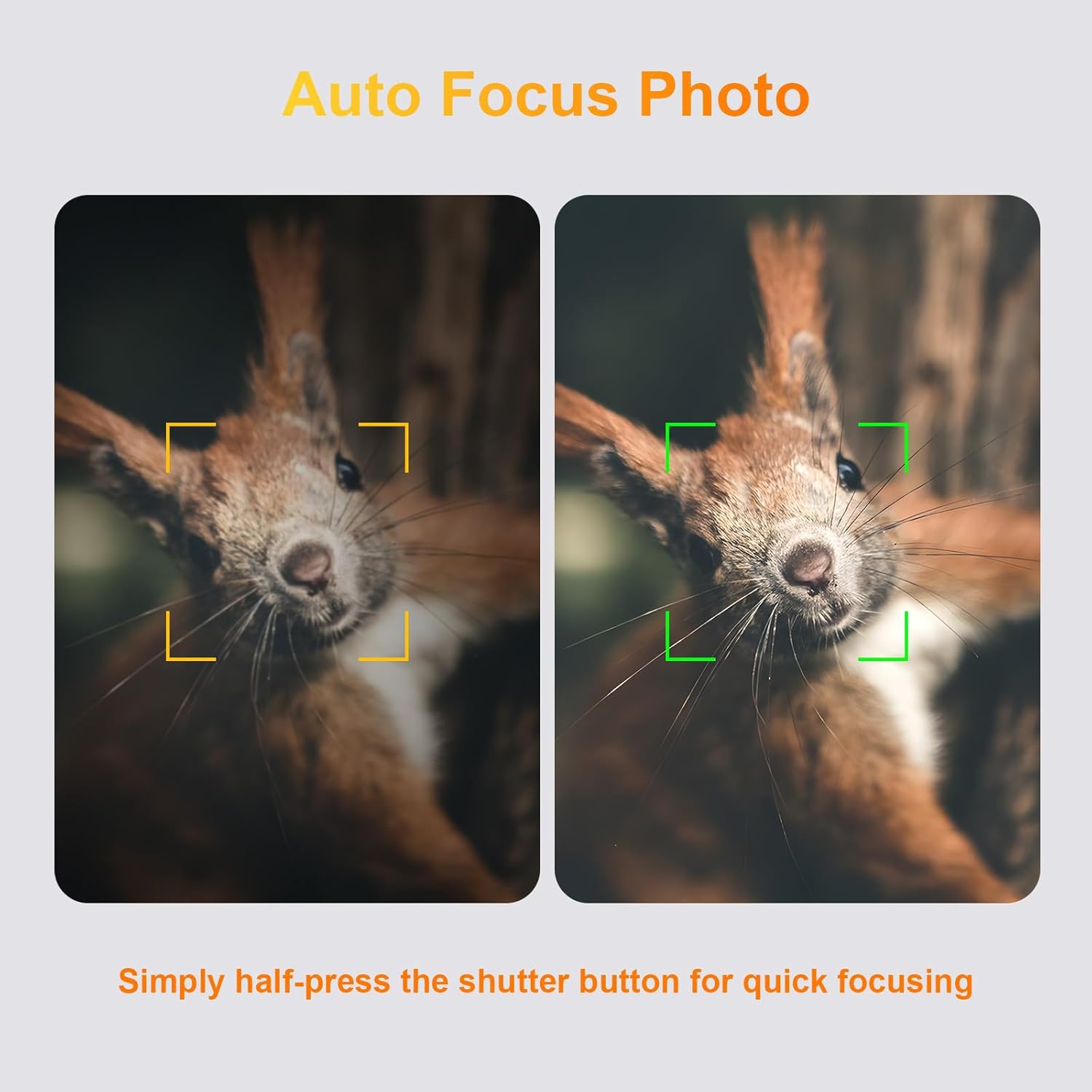 • HD дизайн с двоен екран: С двоен 2,8-инчов и 1,4-инчов IPS HD дисплей, тази водоустойчива камера предлага изключителни цветове и яснота, така че можете лесно да проверявате снимките си, когато правите селфита или видео. С интелигентните функции на уеб камерата, разпознаването на лица и функцията за непрекъснато снимане, всеки запис е стабилен, интелигентен и удобен. Независимо дали искате да документирате ежедневието си, да пътувате или да се наслаждавате на семейни събирания, тази камера отговаря на всички ваши разнообразни нужди.