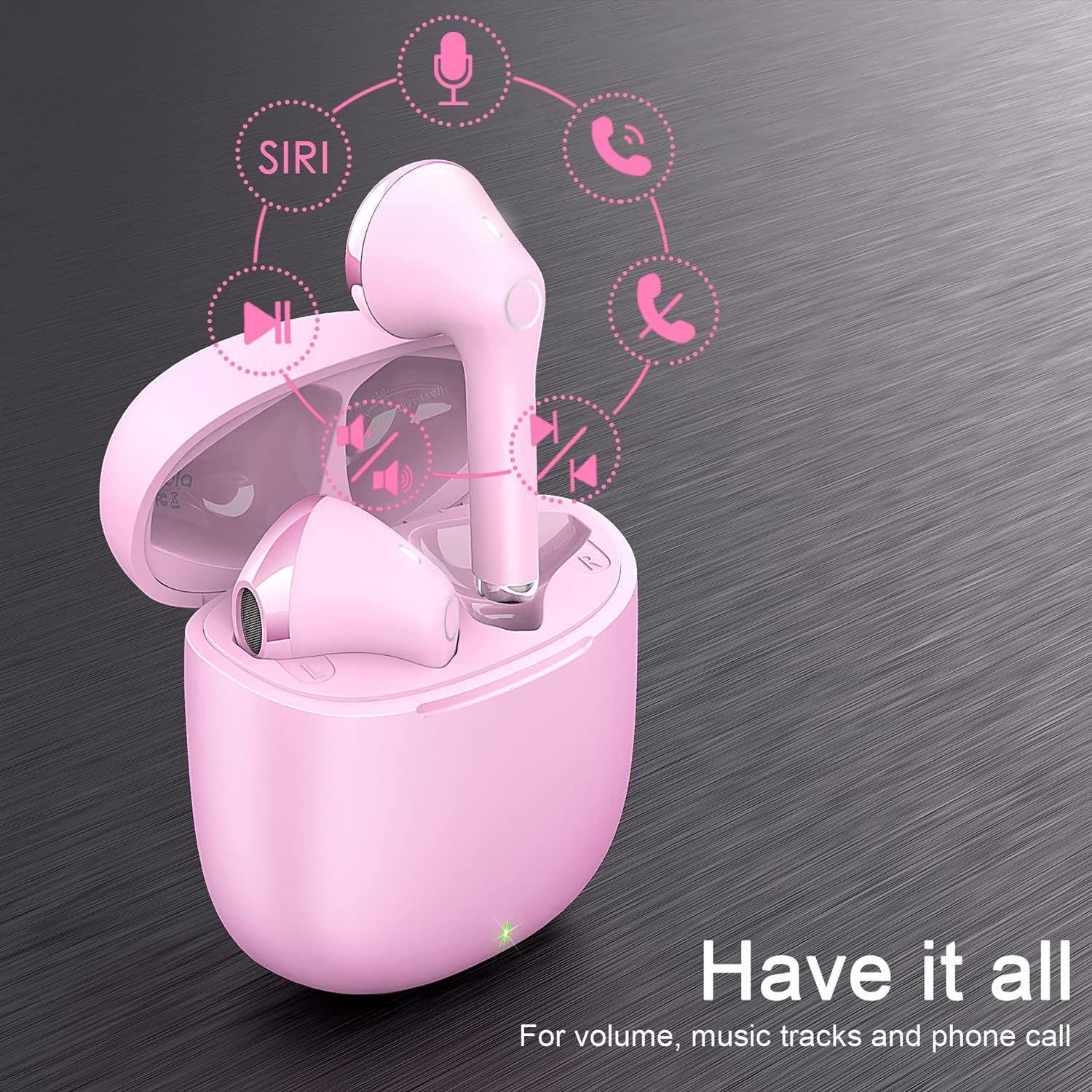 • Дълъг живот на батерията: Bluetooth слушалките осигуряват до 5 часа висококачествен звук с едно зареждане, а включеният калъф за зареждане осигурява допълнителни 4 зареждания, което дава общо 25 часа време за възпроизвеждане.