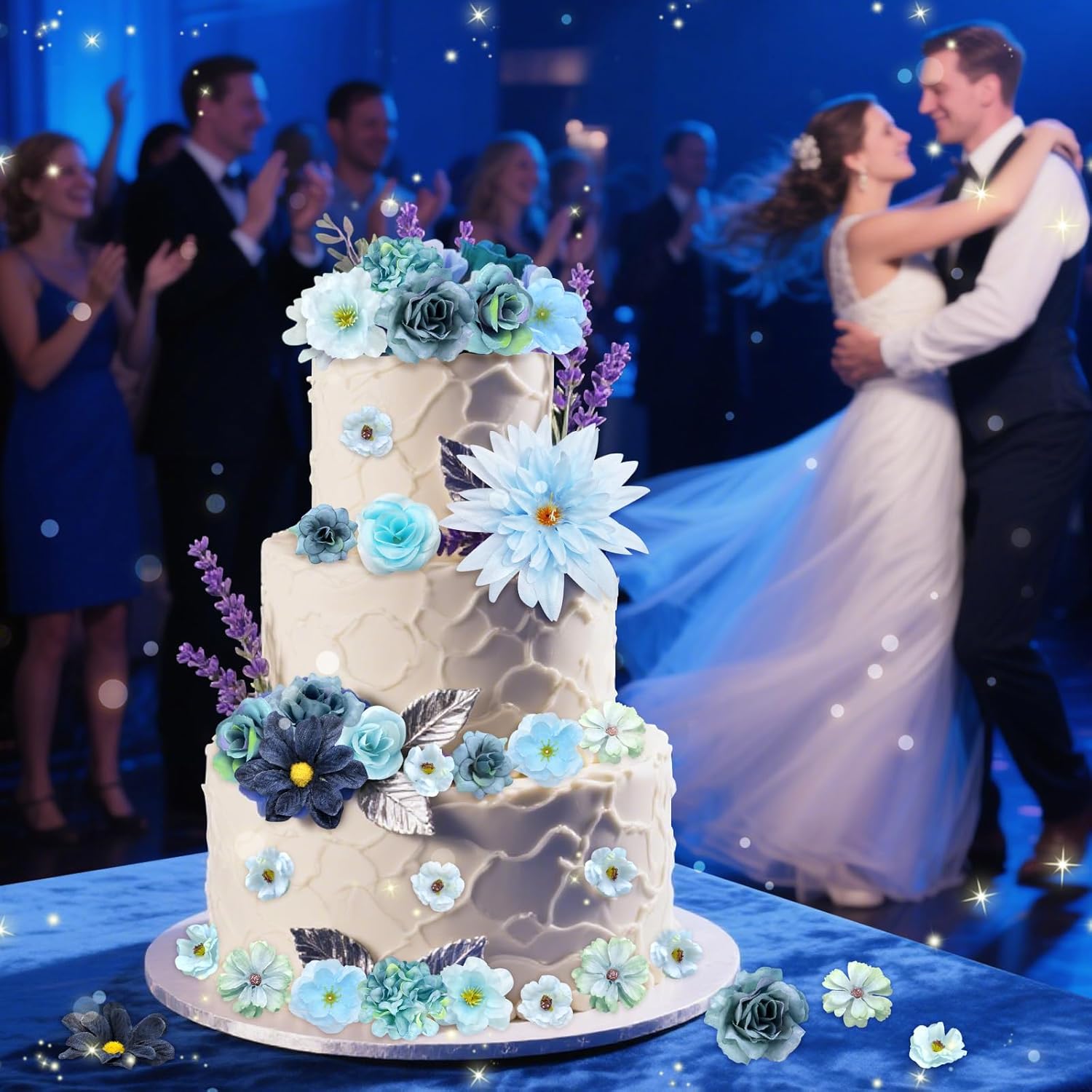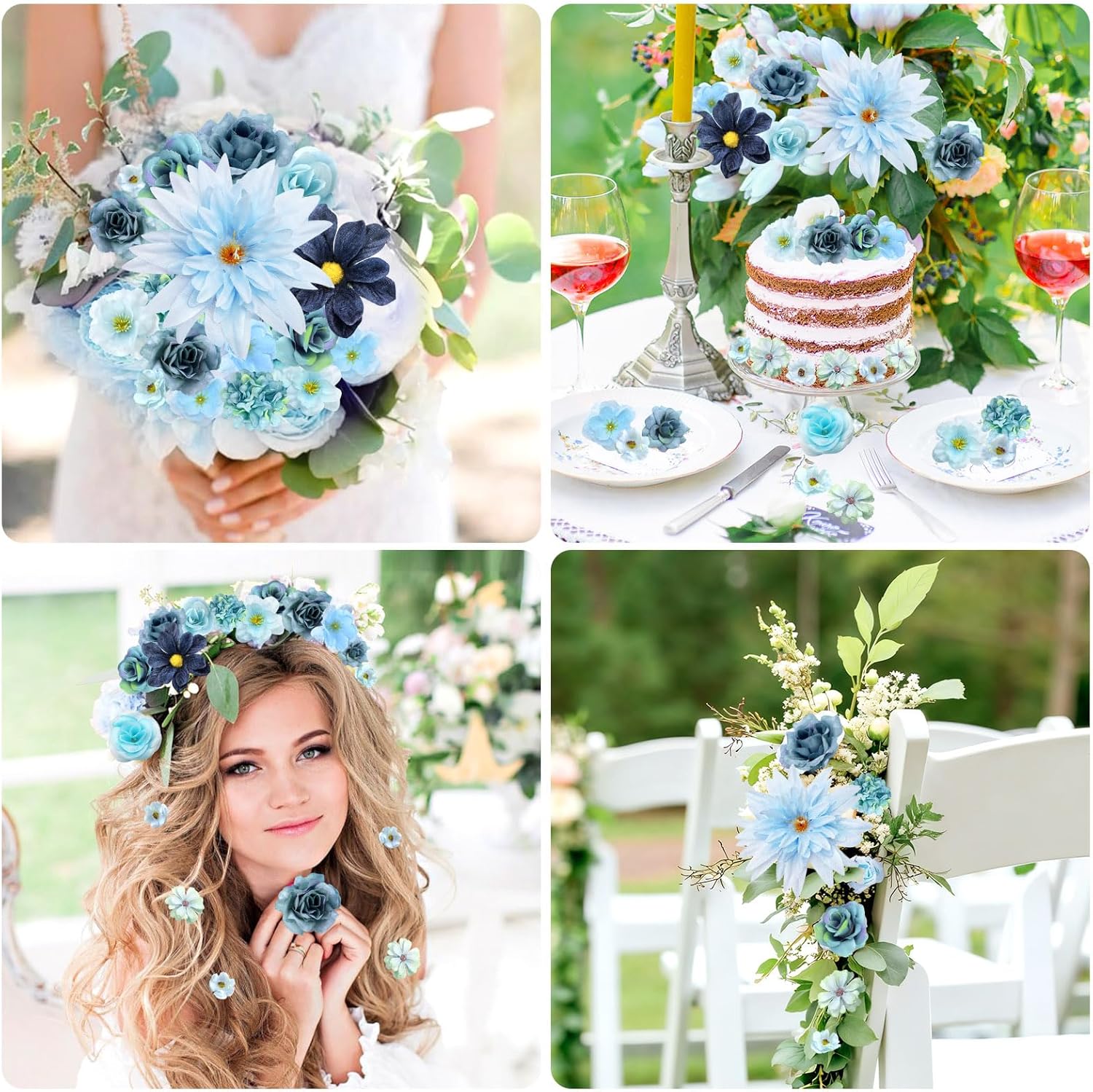 YSUVIN Пакет от 50 изкуствени цветя за занаяти, сини изкуствени цветни главички, 11 вида изкуствени цветя за занаяти, цветя за декорация на торти, цветя за декорация „Направи си сам“, занаяти, сватбено парти, дом