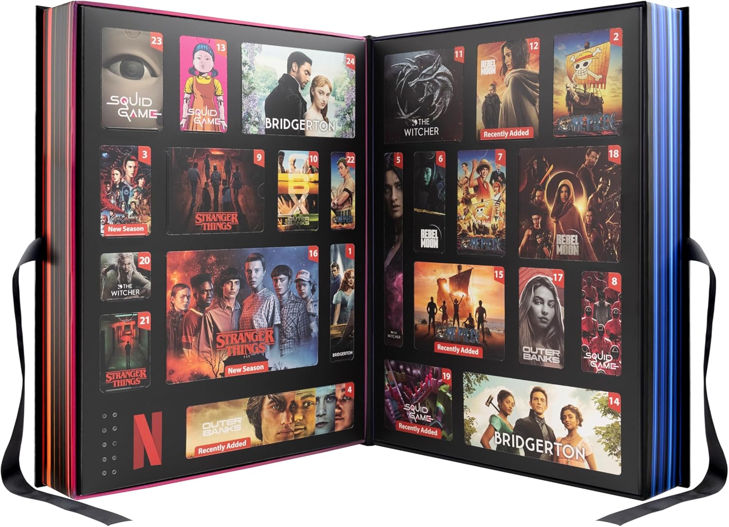 24 премиум артикула вътре от 7 заглавия на Netflix, включително: Stranger Things, Bridgerton, One Piece, Squid Game, Outer Banks, The Witcher и Rebel Moon