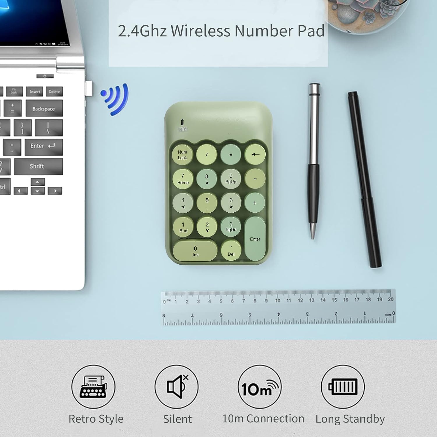 10 м безжична стабилна връзка, стабилна и надеждна 2.4G безжична технология, която покрива разстояние на предаване от 10 м, силна защита от смущения, без забавяне или загуба на код; plug and play, могат да се използват както лаптопи, така и настолни компютри, което е удобно и бързо.