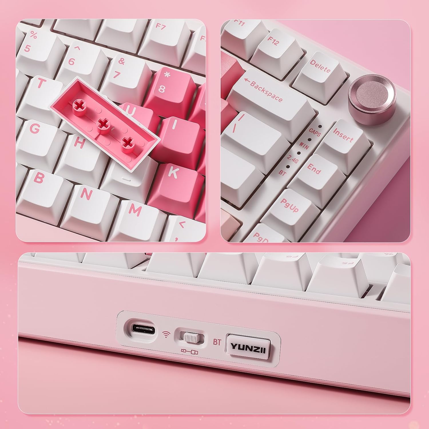 YUNZII B75 PRO Безжична механична клавиатура, 75% уплътнение за геймърска клавиатура, възможност за гореща замяна, персонализирана клавиатура с бутони, предварително смазани RGB превключватели, трирежимна клавиатура (бяло-сърцеви, млечен превключвател)