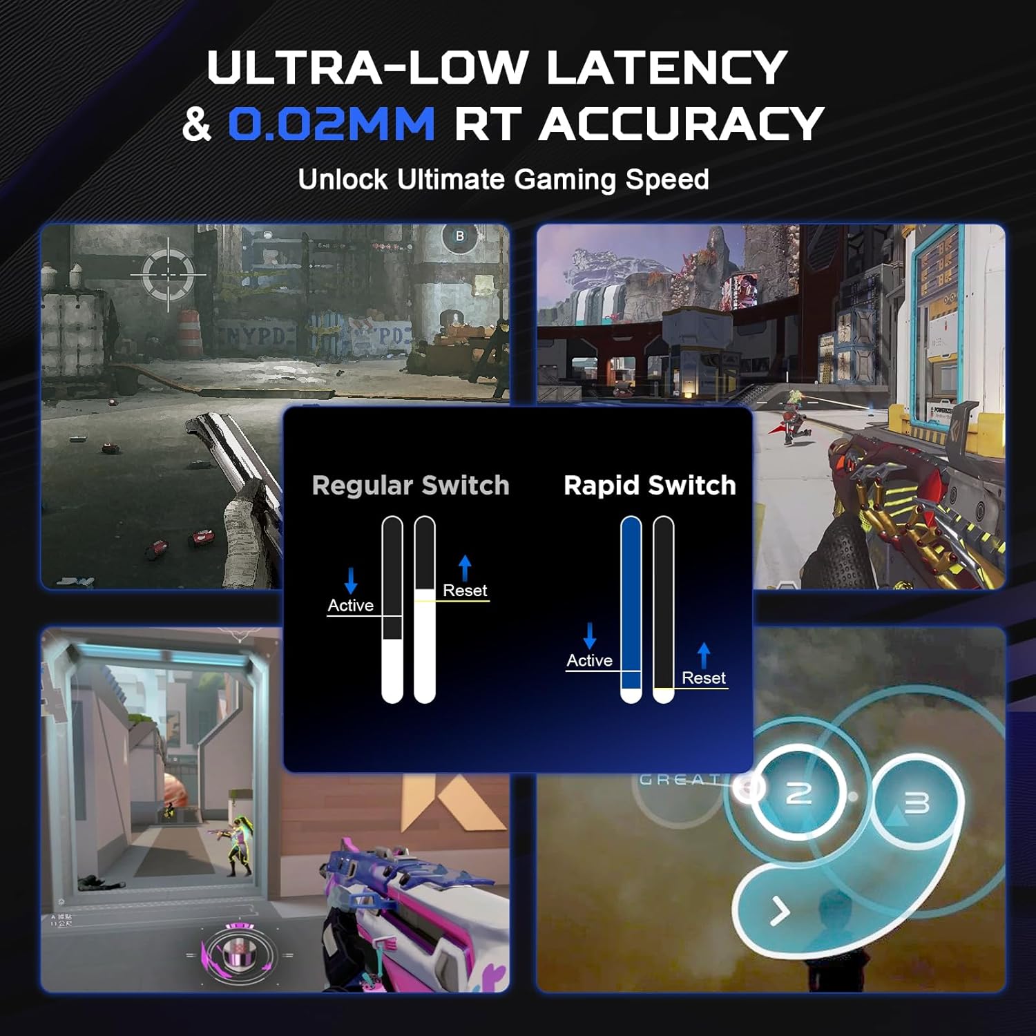 • УЛТРА БЪРЗА МАГНИТНА КЛАВИАТУРА С ХОЛ ЕФЕКТ MAD68 HE е модерна клавиатура с хол ефект, предназначена за геймъри, които изискват скорост и прецизност. С линейни магнитни превключватели, бърза латентност от 0,125 ms и честота на семплиране от 8K, тази магнитна клавиатура осигурява незабавна регистрация на натисканията на клавишите. С точност от 0,02 мм и технология за бързо задействане, тя предлага ненадмината бърза реакция, идеална за състезателни игри. Забележка: тази клавиатура не е съвместима с PS5.