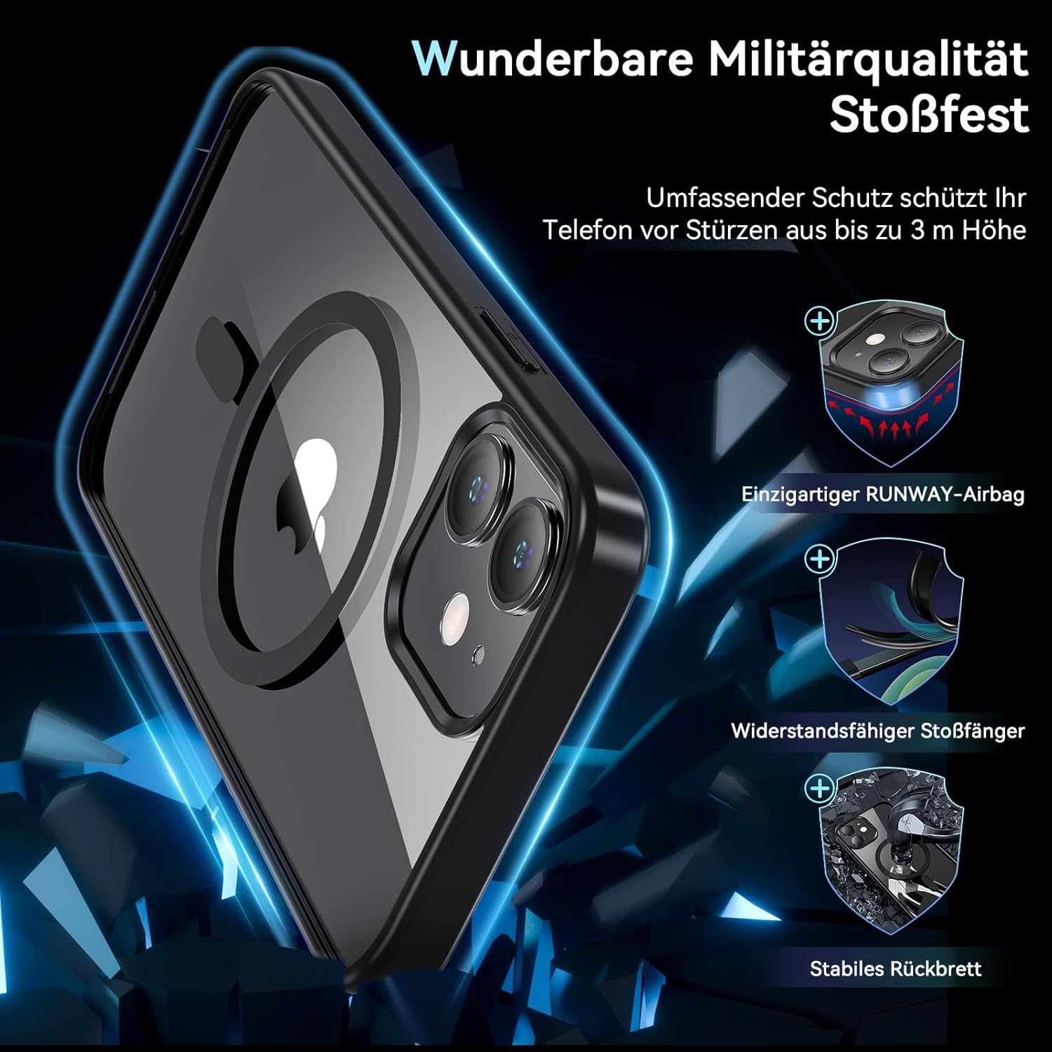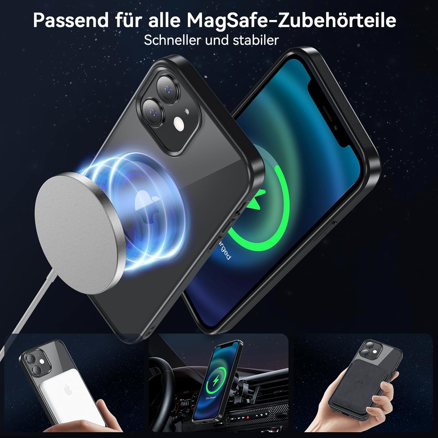За iPhone 12, Калъф за iPhone 12 Pro за Magsafe със защита от закалено стъкло, защита от военен клас, удароустойчив магнитен калъф за мобилен телефон i-Phone12, Калъф за iPhone 12 Pro, Тънък защитен капак