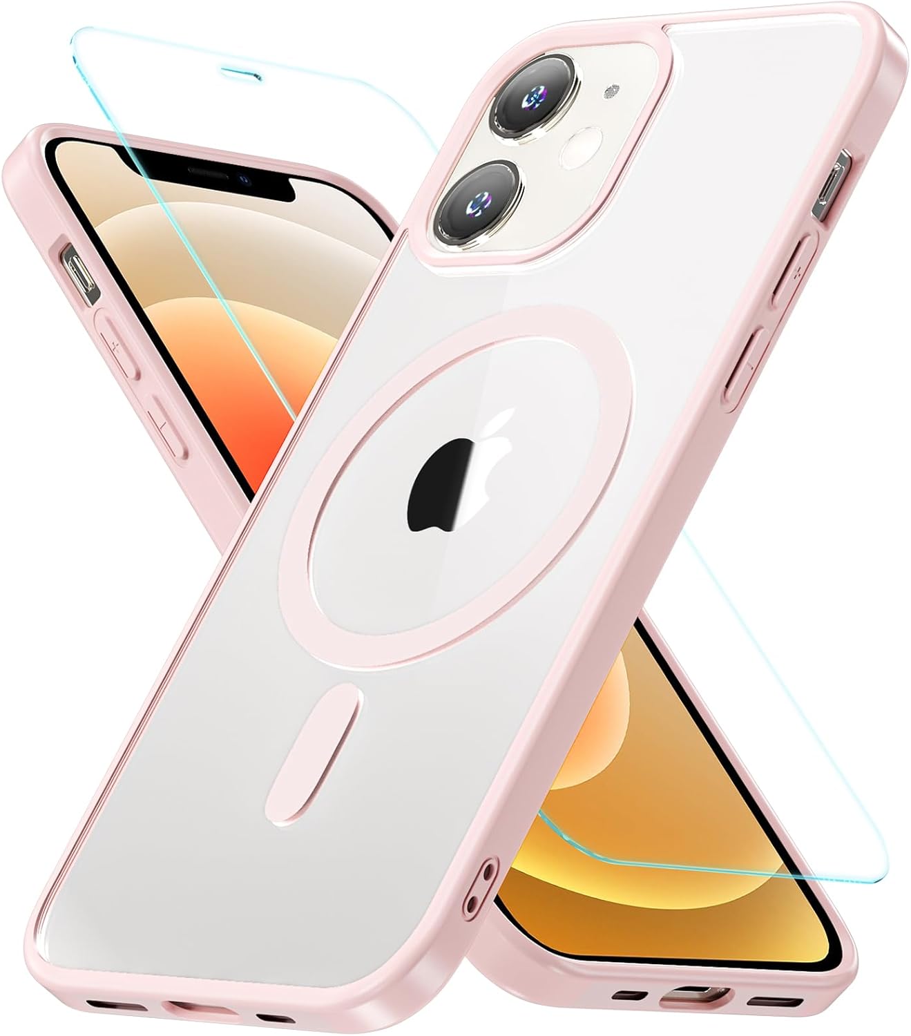 За iPhone 12, Калъф за iPhone 12 Pro за Magsafe със защита от закалено стъкло, Защита от военен клас, Удароустойчив магнитен калъф за мобилен телефон iPhone 12, Калъф за iPhone 12 Pro, Тънък калъф за външна употреба