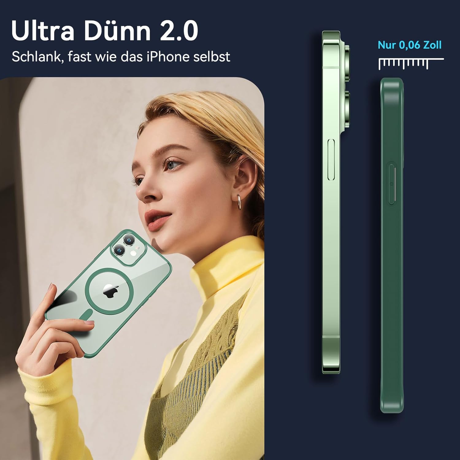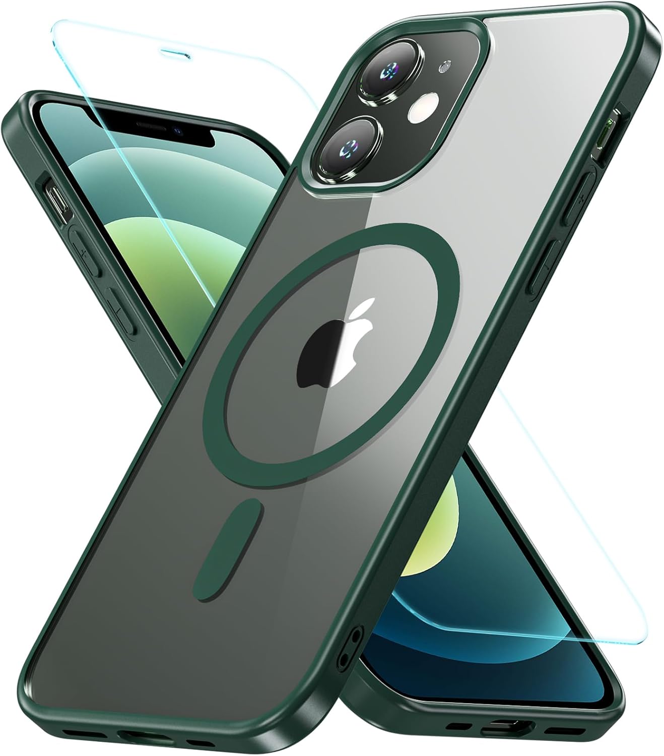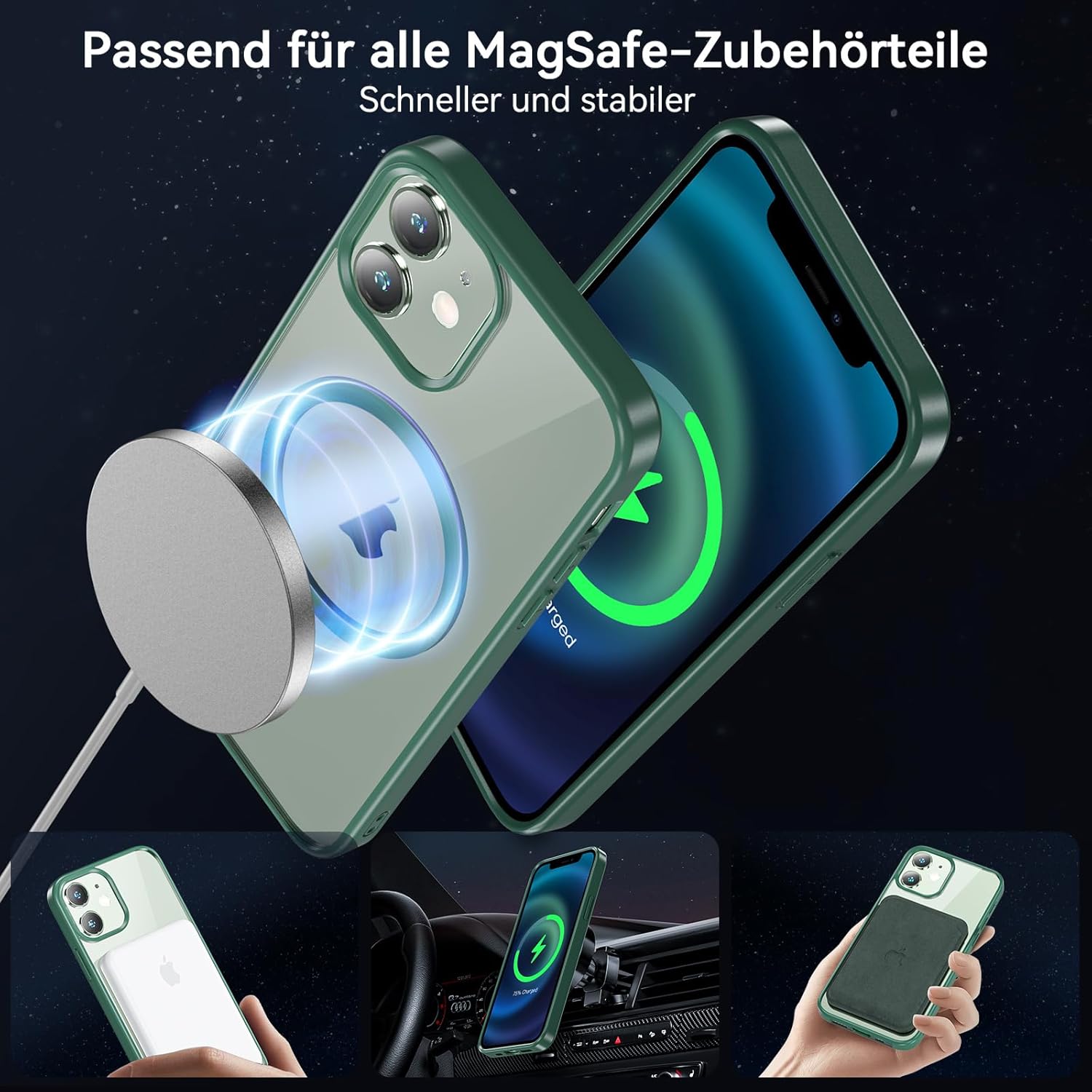 За iPhone 12, Калъф за iPhone 12 Pro за Magsafe със защита от закалено стъкло, защита от военен клас, Удароустойчив магнитен калъф за мобилен телефон iPhone 12, Калъф за iPhone 12 Pro, Тънък калъф за външна употреба