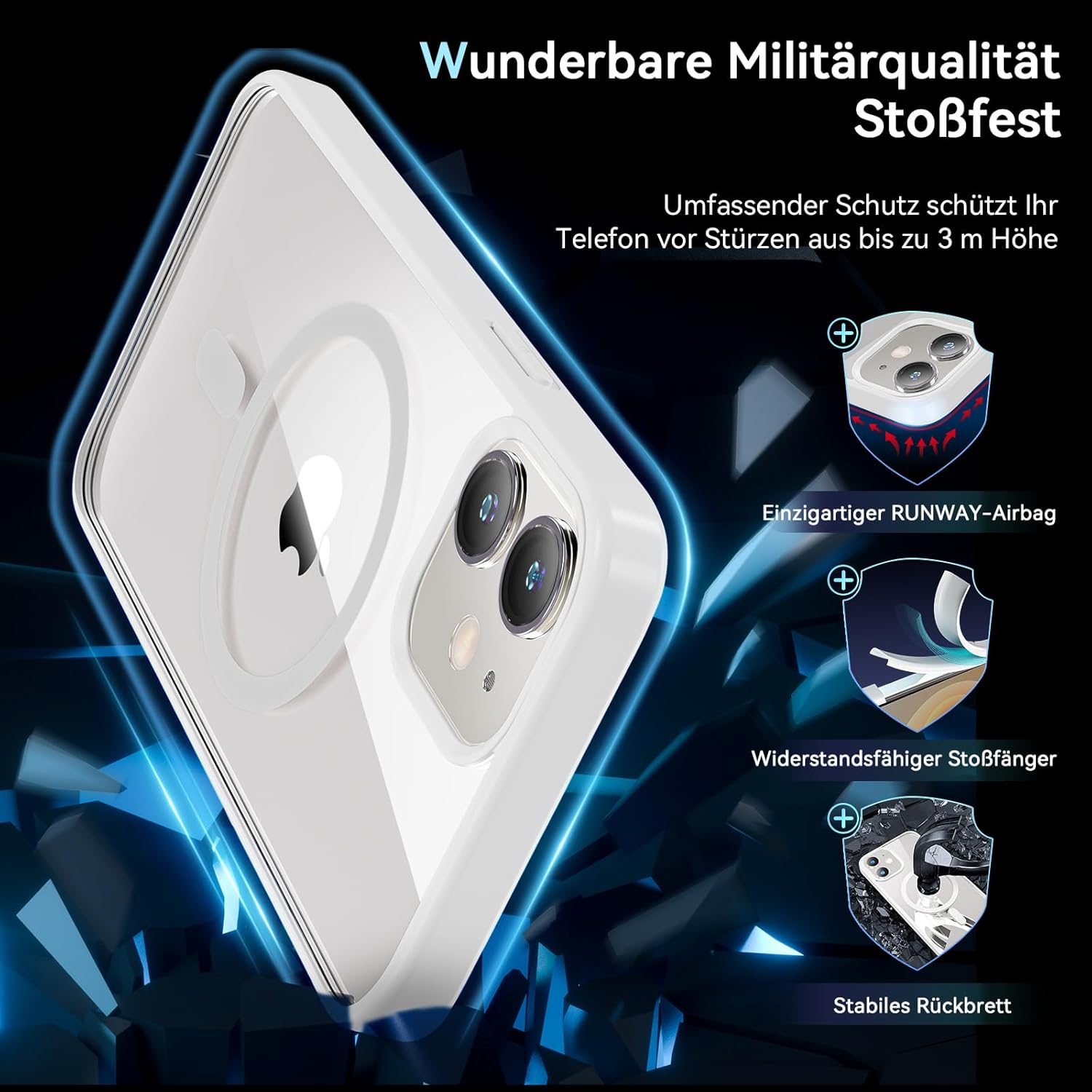За iPhone 12, Калъф за iPhone 12 Pro за Magsafe със защита от закалено стъкло, Защита от военен клас, Удароустойчив магнитен калъф за мобилен телефон iPhone 12, Калъф за iPhone 12 Pro, Тънък калъф за външна употреба