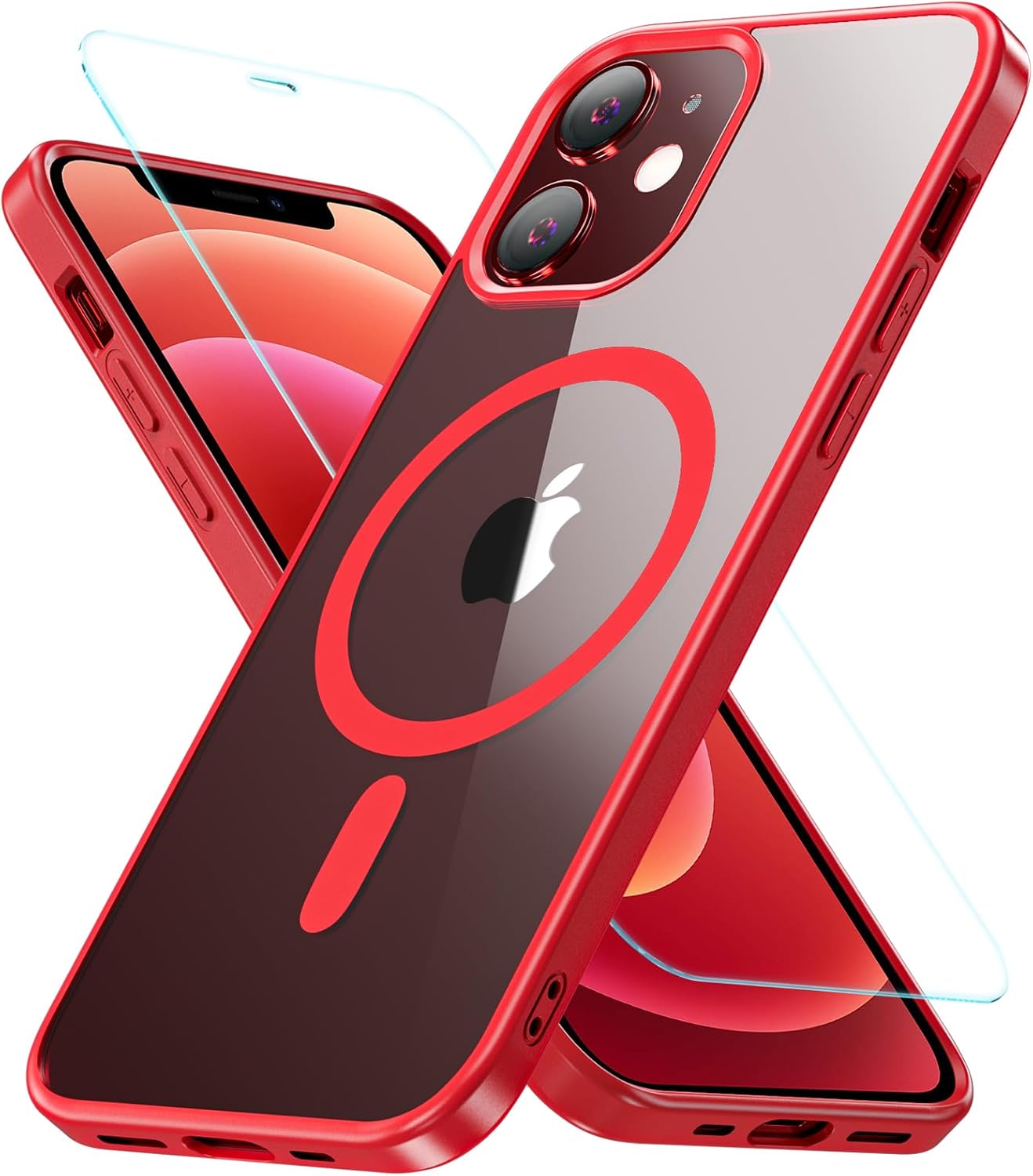 За iPhone 12, Калъф за iPhone 12 Pro за Magsafe със защита от закалено стъкло, защита от военен клас, Удароустойчив магнитен калъф за мобилен телефон iPhone 12, Калъф за iPhone 12 Pro, Тънък калъф за външна употреба