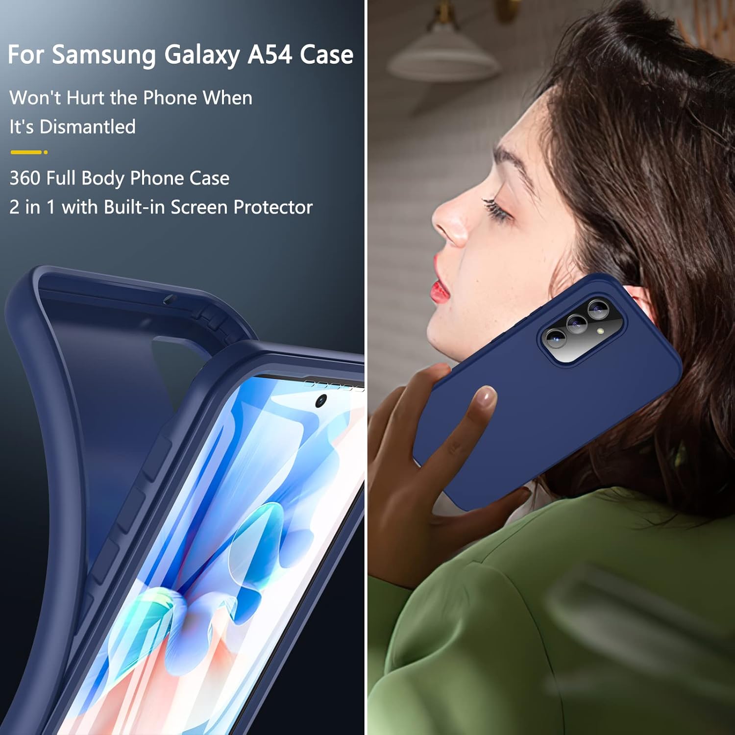 За Samsung A54 5G, калъф за Samsung Galaxy A54, 360-градусова всестранна защита, удароустойчив калъф за мобилен телефон, силиконов, здрав, защитен калъф за външен монтаж с вграден протектор за екрана.