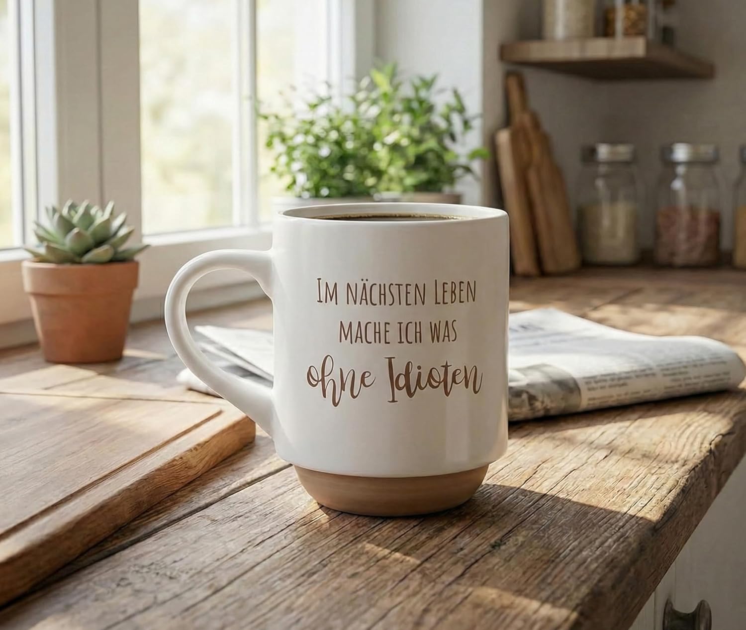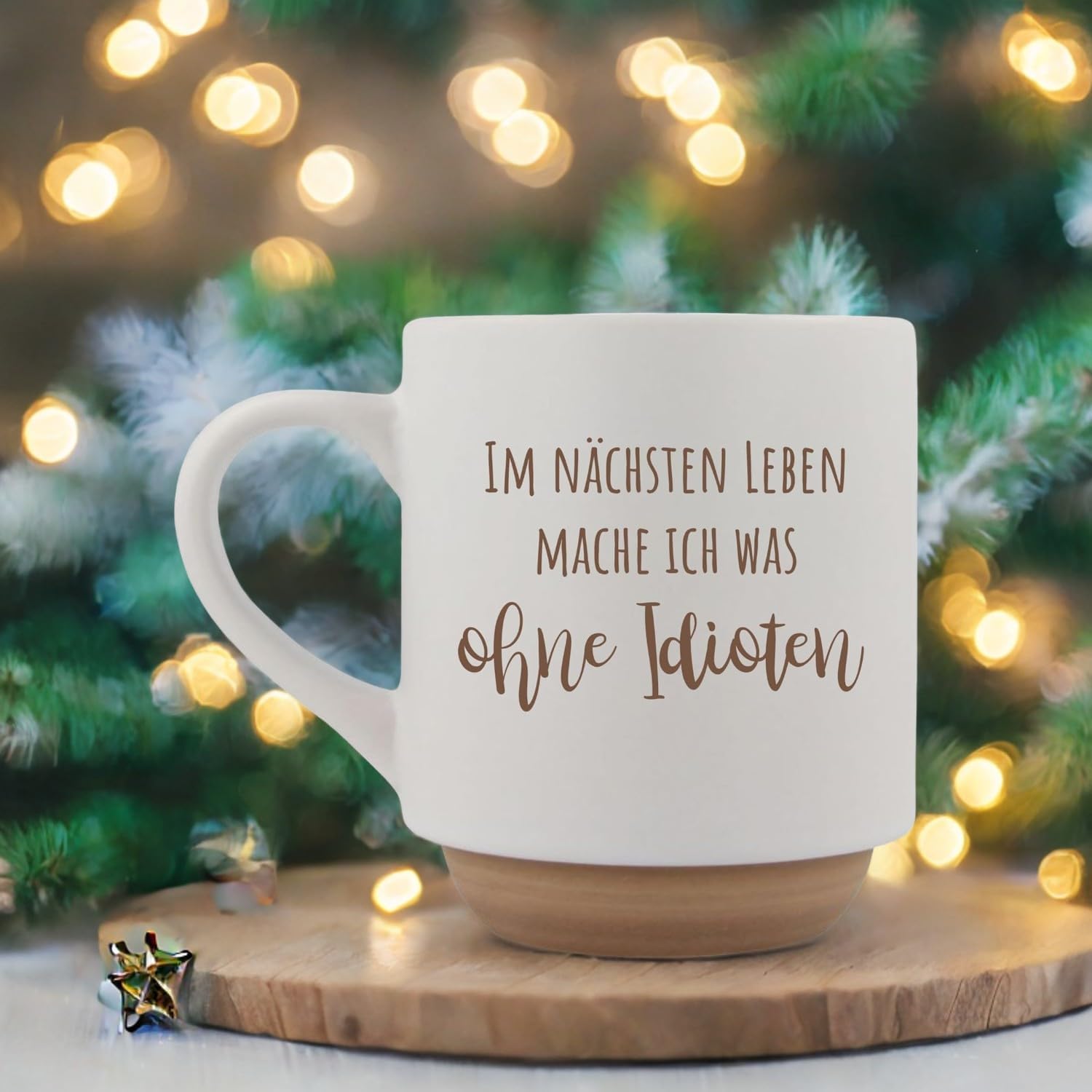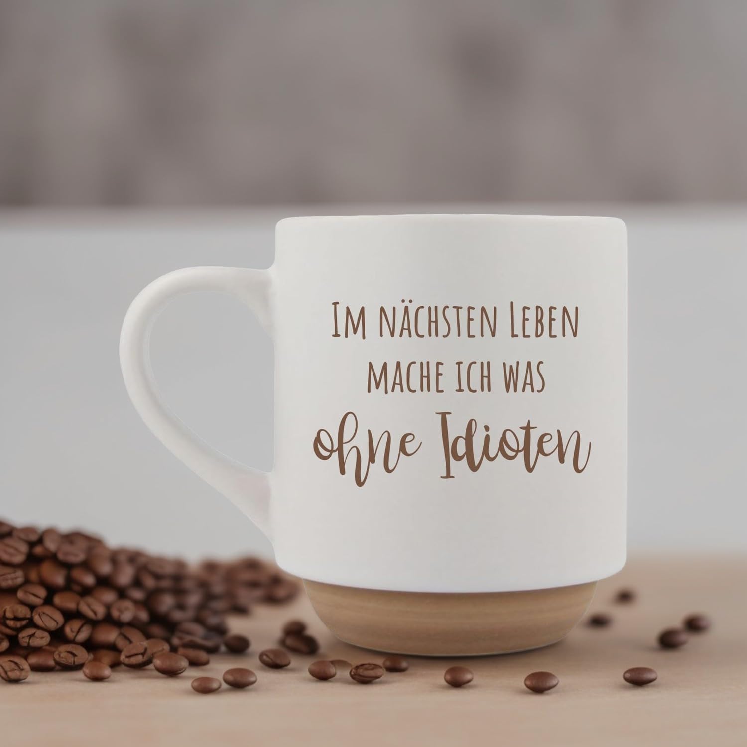 Забавна чаша за кафе с лазерна татуировка и надпис за офиса и дома | Подарък за колега, приятел | Финландски дизайн (идиоти)