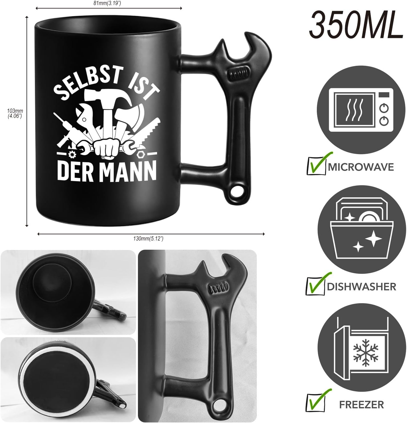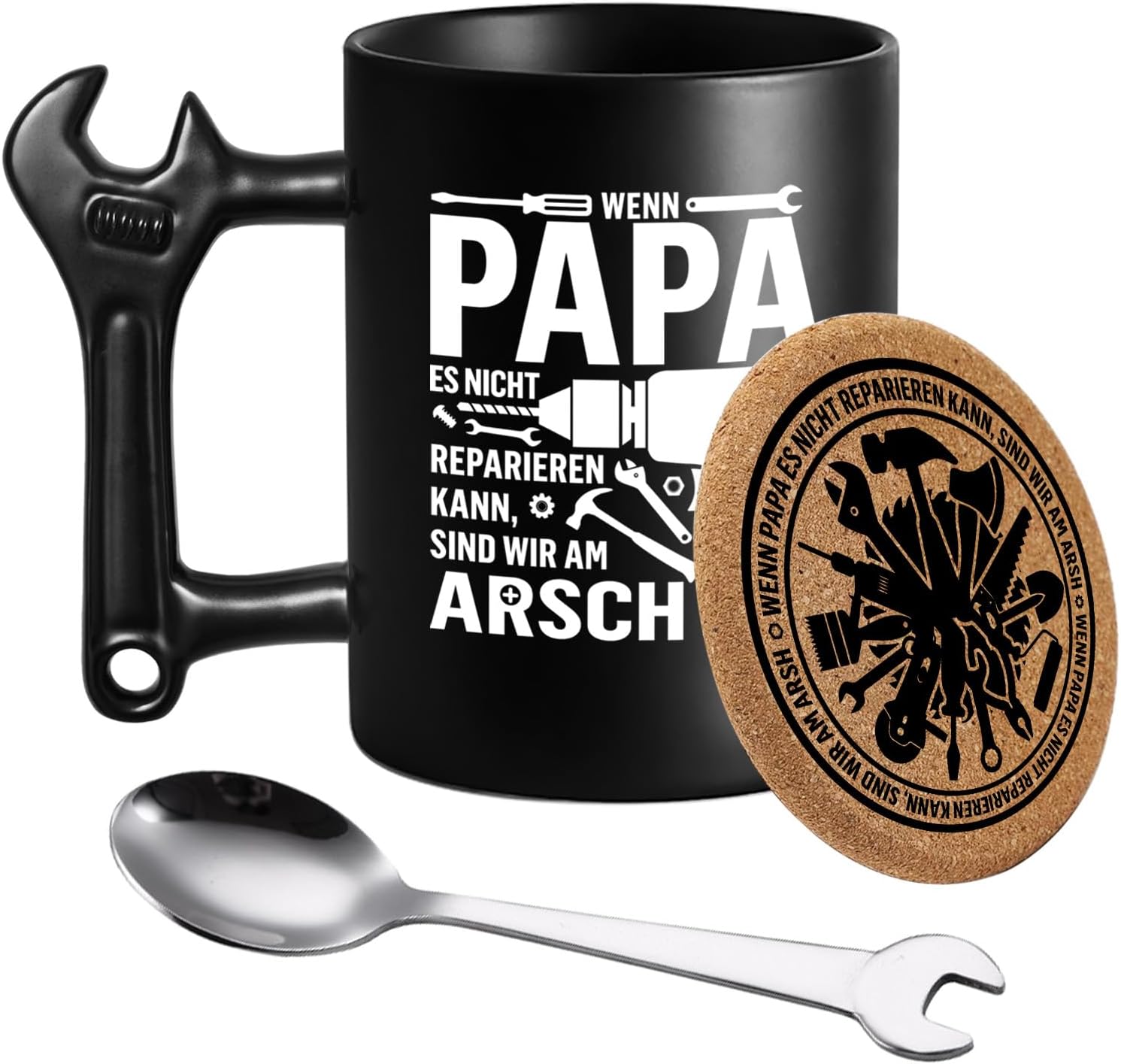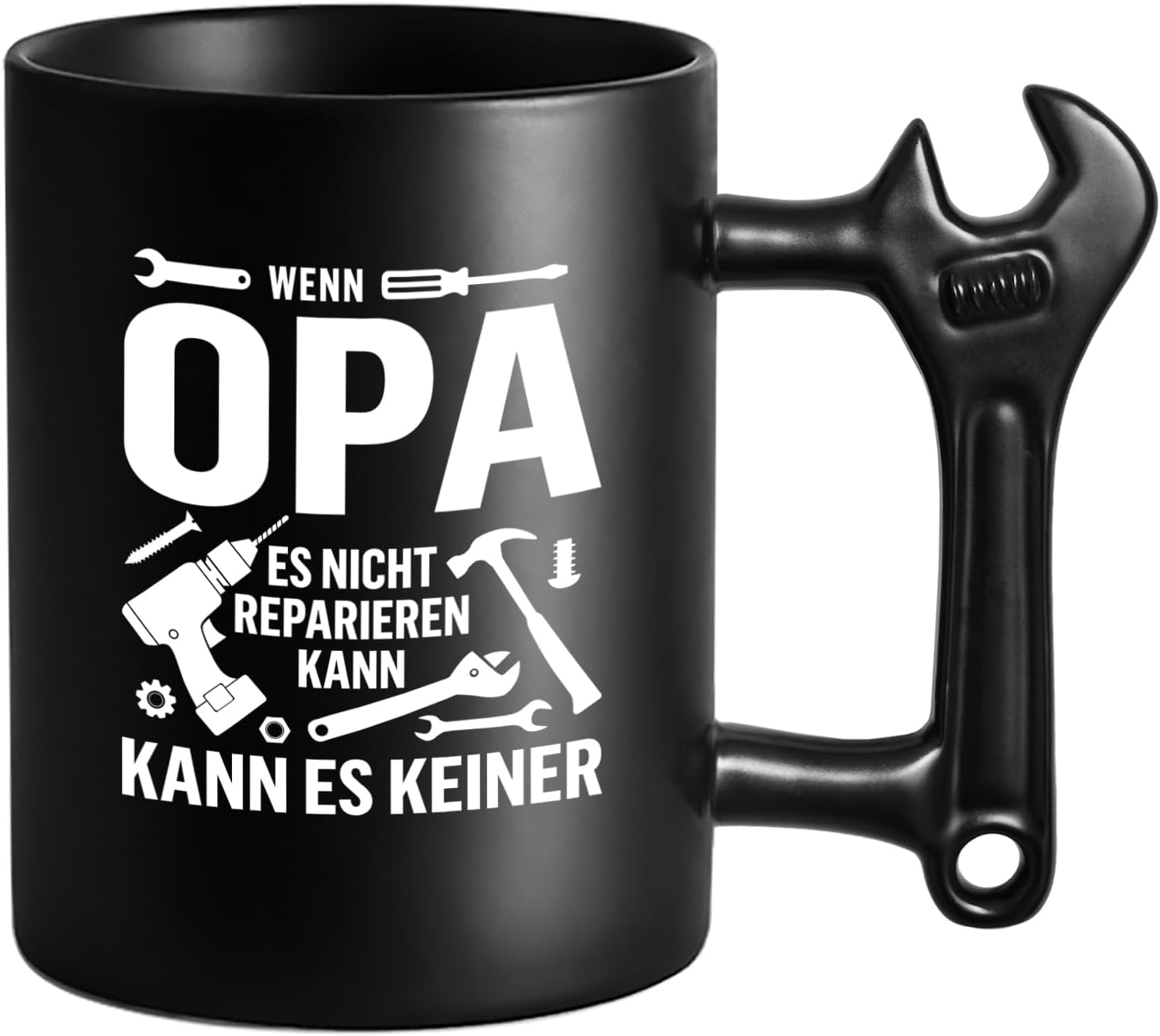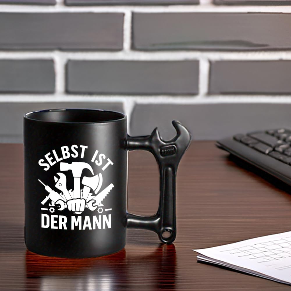 Der Griff ist wie ein echter Schraubenschlüssel gestaltet – stabil, auffällig. Ideal für Männer, die Werkzeuge lieben oder gerne selbst Hand anlegen.