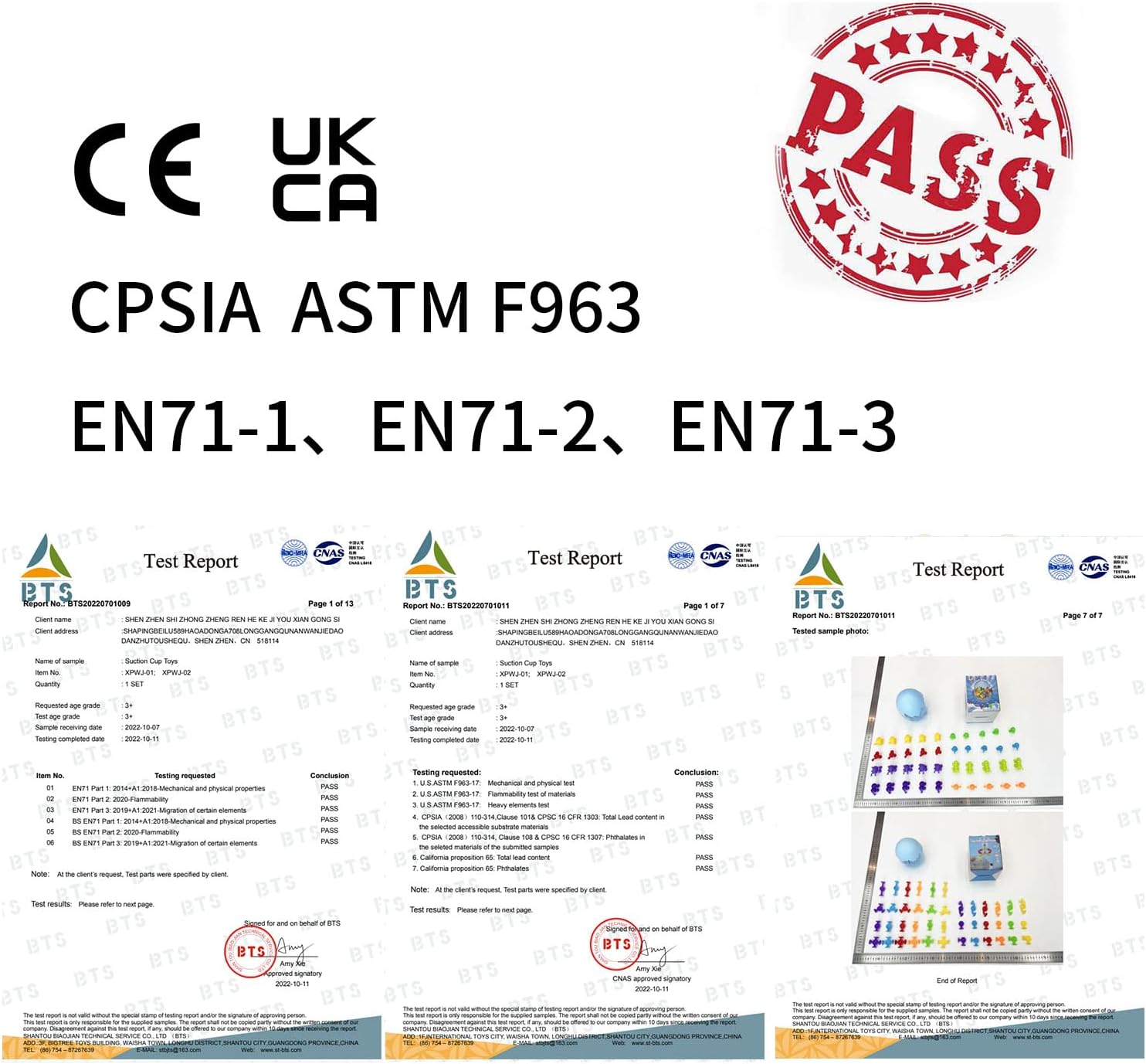 Предлага се със 7 различни форми на всмукателни играчки и 6 различни цвята. Децата могат да ги свържат и да ги сглобят във всякаква форма. Това би помогнало на децата да подобрят фините си двигателни умения, би стимулирало детското въображение и координацията око-ръка.