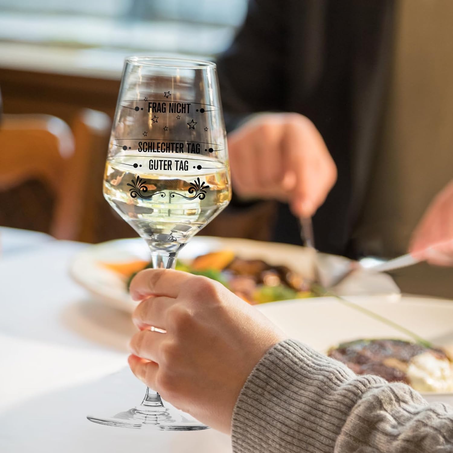 • ПЕРФЕКТЕН ПОДАРЪК: Търсите подарък за рожден ден за жена? „ЛОШ ДЕН, ДОБЪР ДЕН, НЕ ПИТАЙТЕ“ Този комплект чаши за вино е вашият най-добър избор. Прекрасни подаръци за чаша за вино за жени.