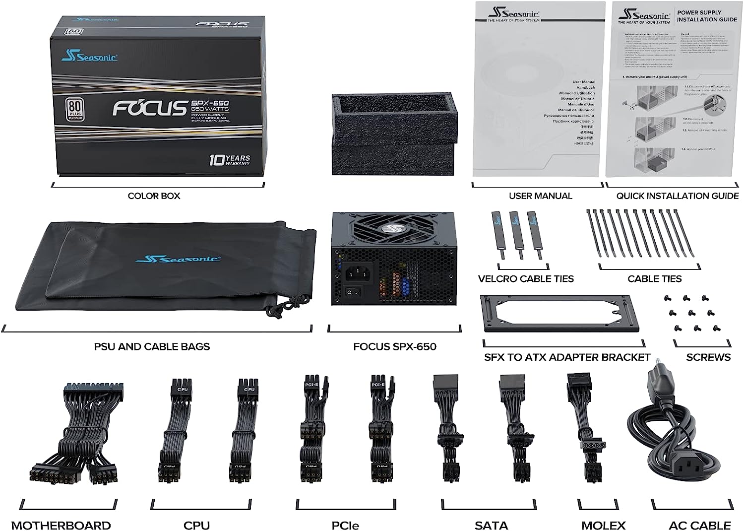 Захранващ блок Seasonic FOCUS SGX, 650 W, SFX, 92 мм вентилатор, Modular, 80 Plus Platinum, Черен