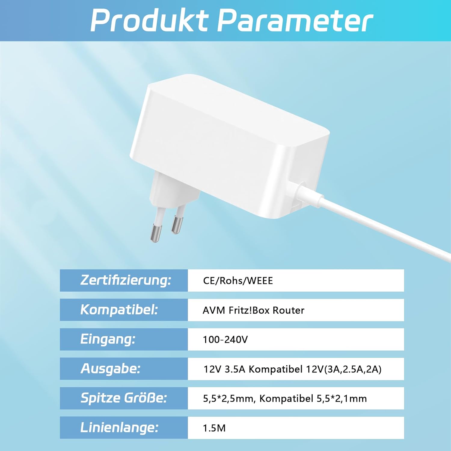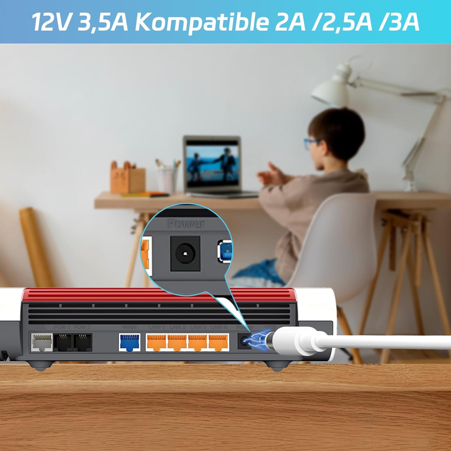 • Съвместимост със зарядно устройство: 12 V 3.5 A захранващ кабел, съвместим с AVM FRITZ! Box, AVM FRITZ! Box WiFi 7590 / 7570 / 7560 / 7540 / 7530 / 7490 / 7430 / 7390 / 7362 / 7360, / 7330 / 7320 / 7270 / 7240 / 7170 / 7150 / 7141 / 7140 / 7050 / 6660 / 6360 / 6490 / 6340 / 5050 / 5140 / 4040 / 40, WiFi рутер 20 / 3 390 / 3370 / 3270 / 3170 / 2110.