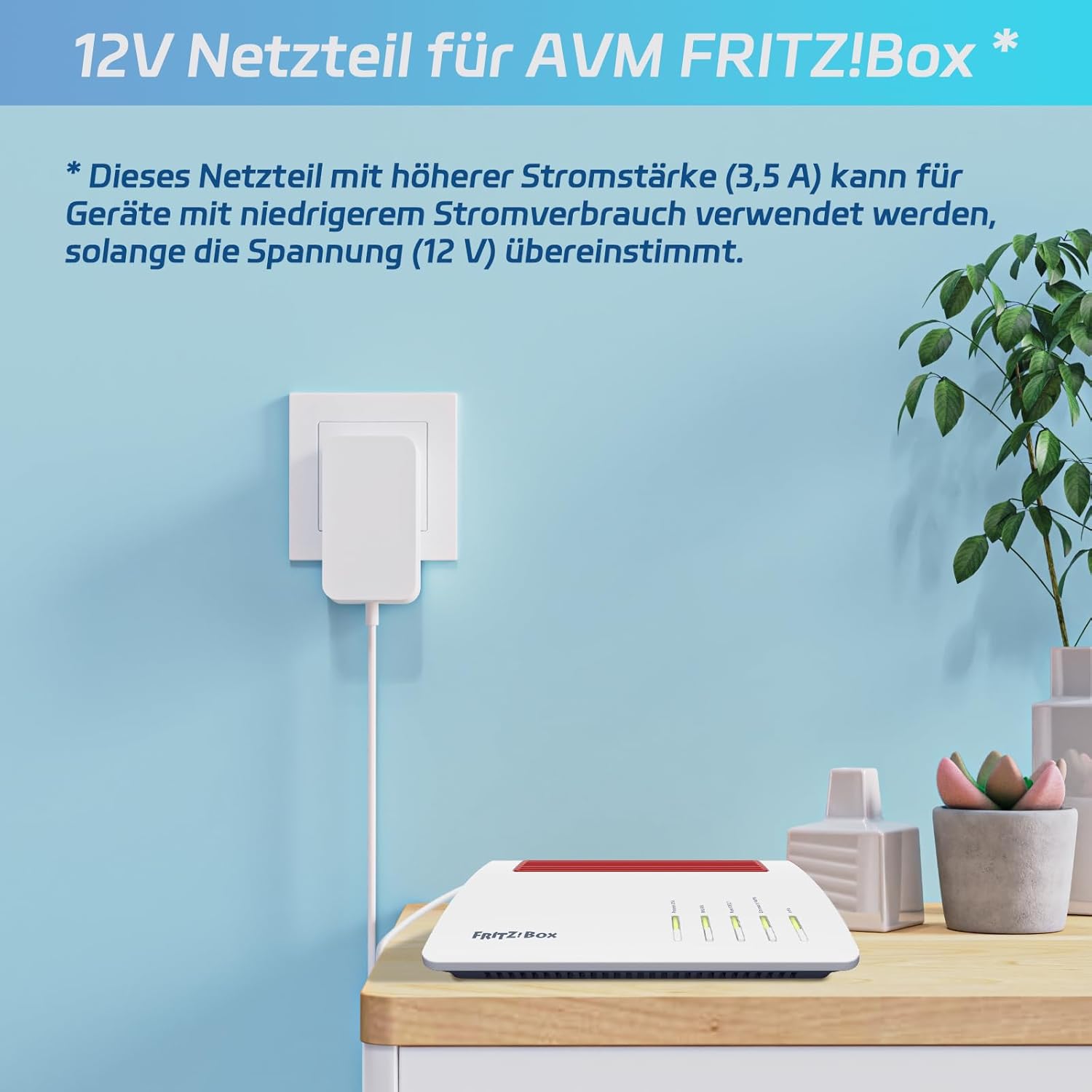 Захранващо устройство 12V 3.5A, съвместимо с AVM Fritz!Box 7590, 7560, 7540, 7530, 7510, 7490, 7430, 7390, 6690, 6490, 5590, 5530 WLAN рутери и Telekom Speedport Smart Plug захранване