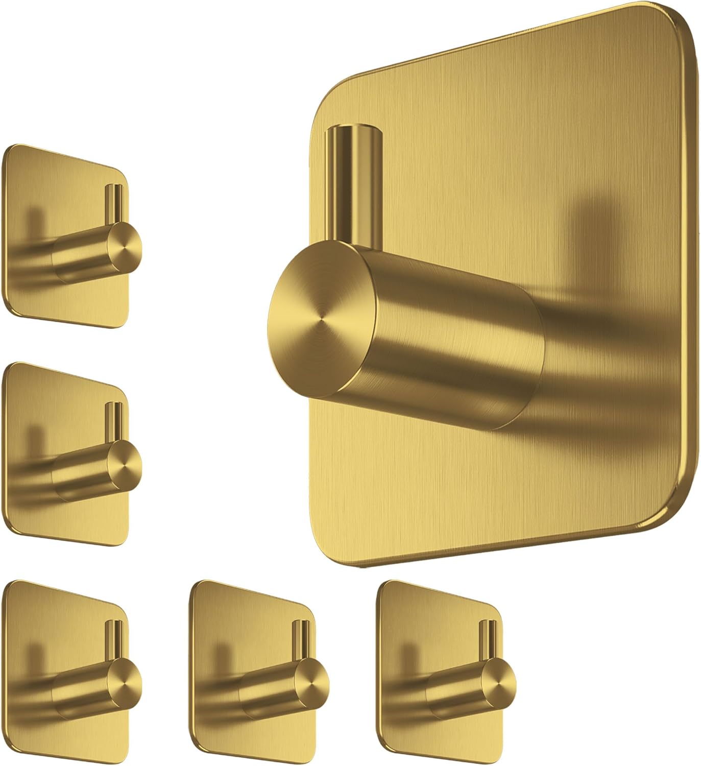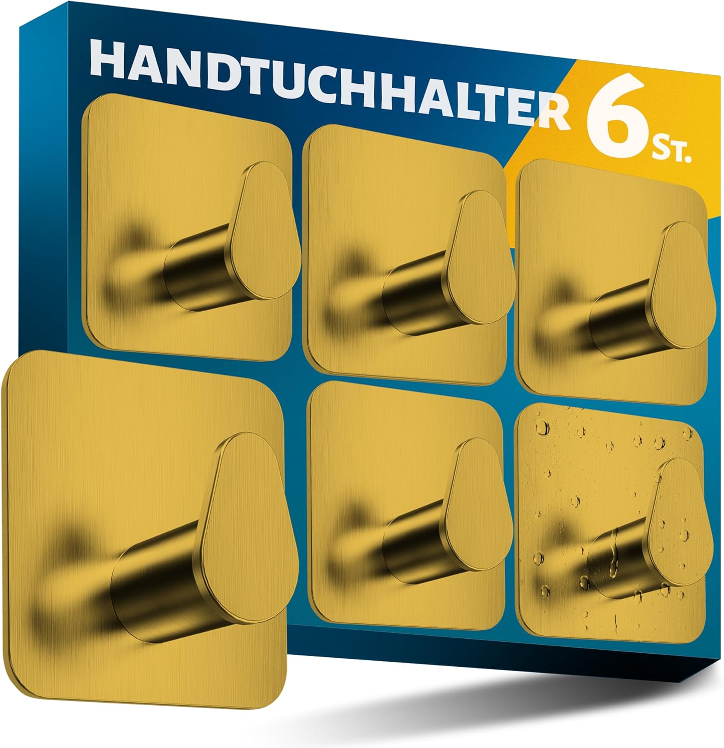 Закачалка за кърпи Menz без пробиване – Комплект от 6 златни самозалепващи кукички с овален дизайн