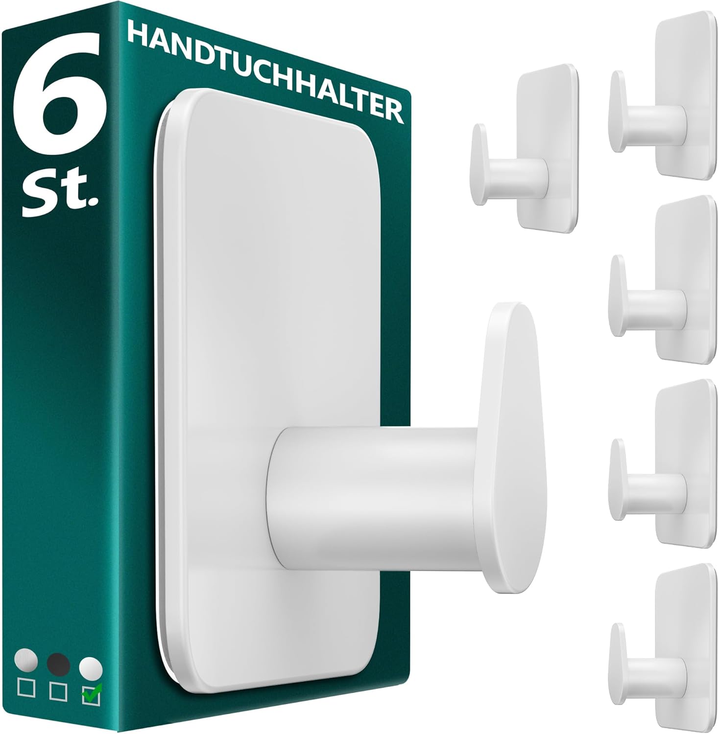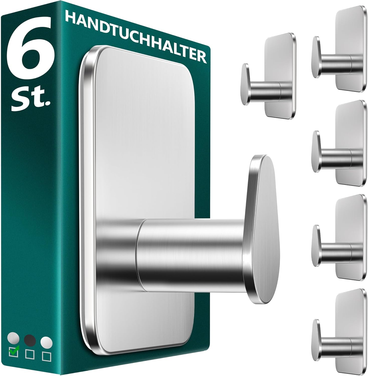 • Елегантни самозалепващи се стенни куки в комплект от 6: висококачествени държачи за кърпи без пробиване от неръждаема стомана с водоустойчиви лепящи подложки осигуряват трайно и здраво закрепване в банята, тоалетната и кухнята.