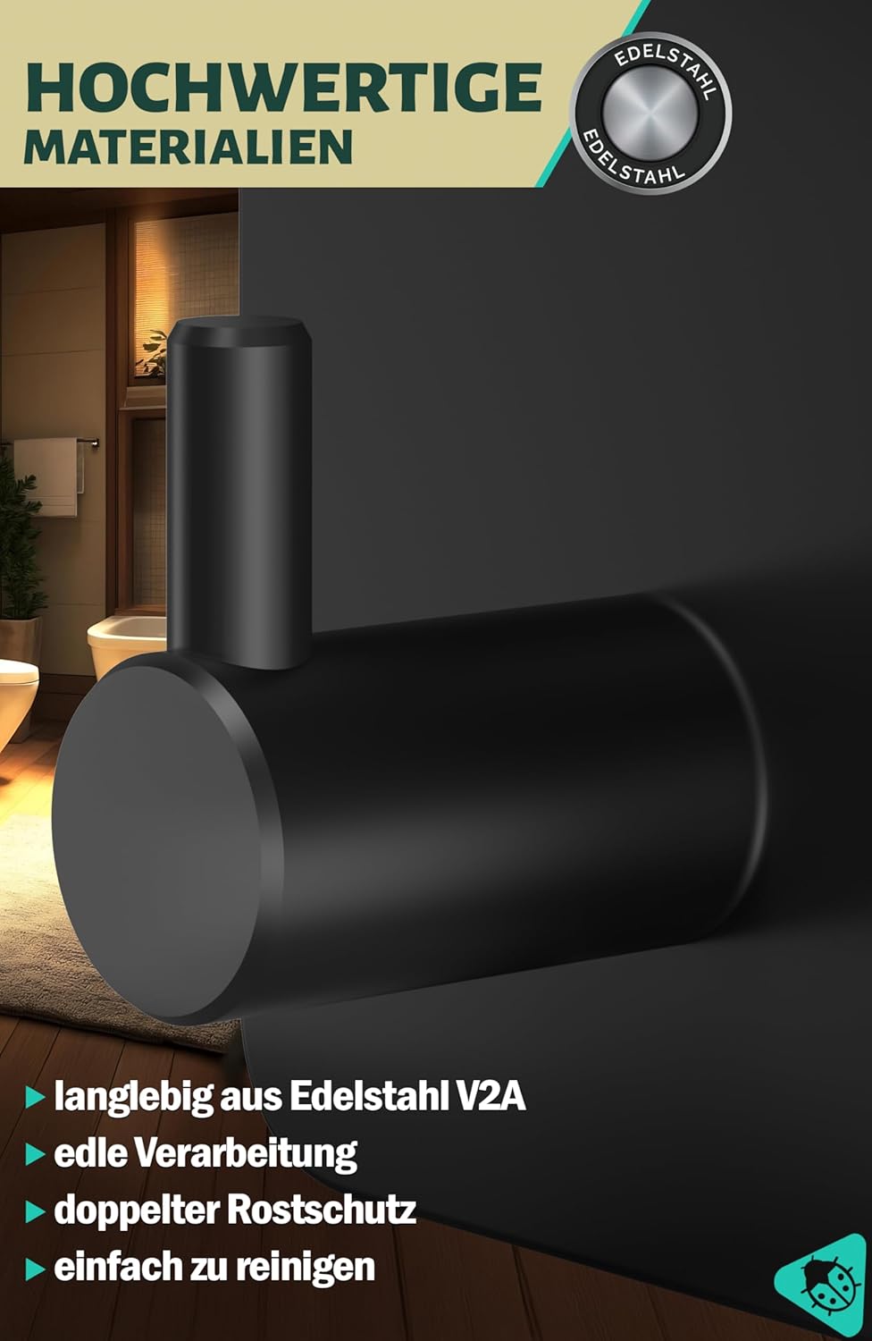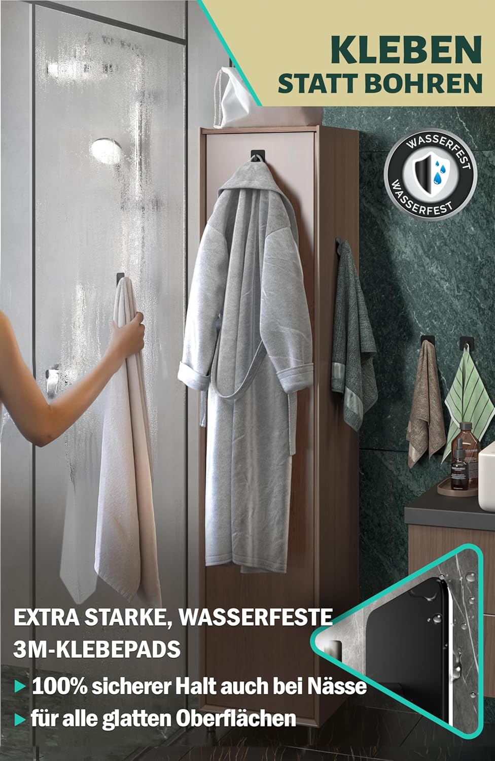 • Висококачествени материали: издръжливи самозалепващи се куки за кърпи, изработени от неръждаема стомана V2A и висококачествена изработка, осигуряват двойна защита от ръжда; лесни за почистване; идеални като аксесоар за баня