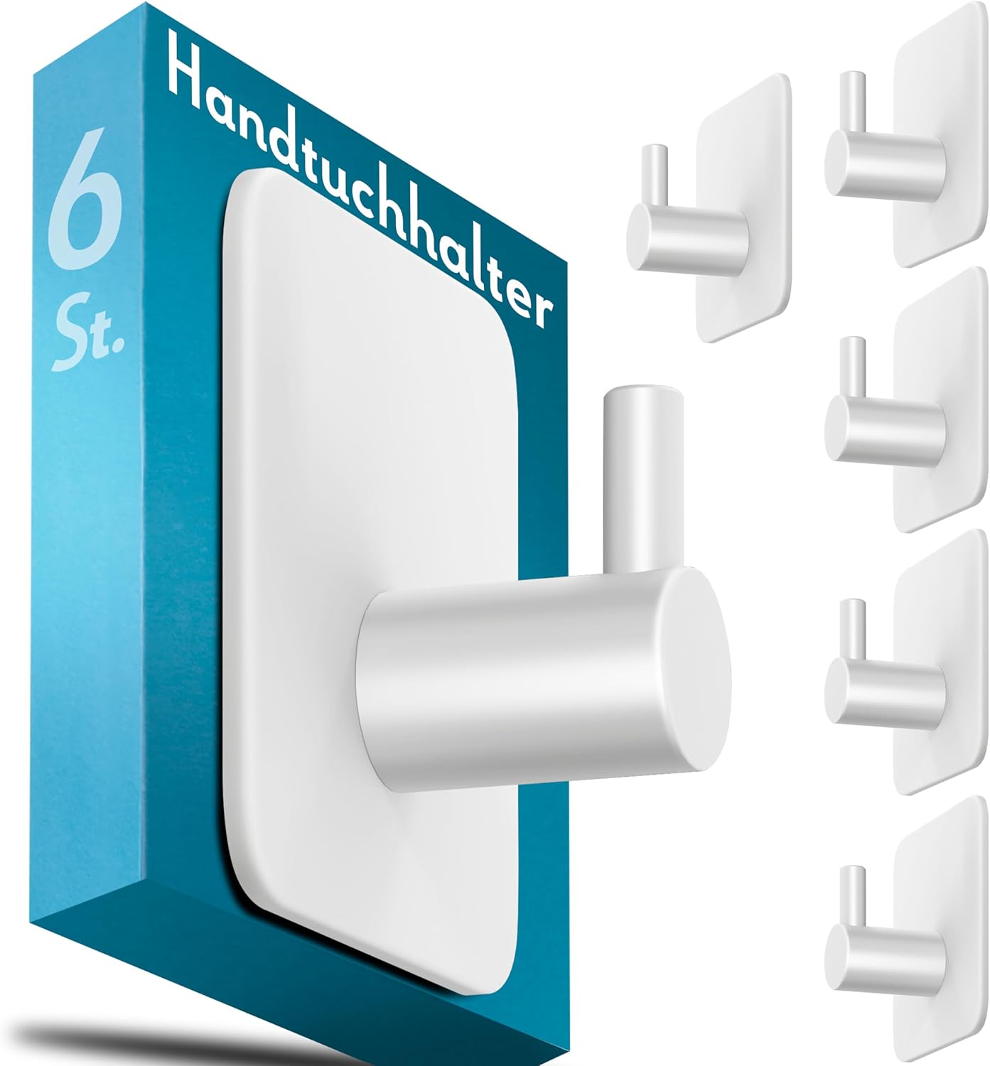 • Елегантни самозалепващи се стенни куки в комплект от 6: висококачествени държачи за кърпи без пробиване от неръждаема стомана с водоустойчиви лепящи подложки осигуряват трайно и здраво закрепване в банята, тоалетната и кухнята.
