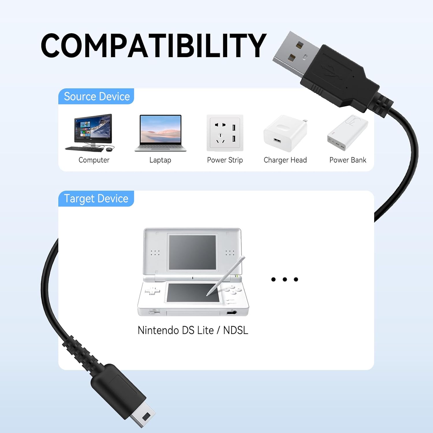 Заряден кабел Tobfit за Nintendo DS Lite, USB заряден кабел за Nintendo DS Lite/NDSL/DSL (120 см)
