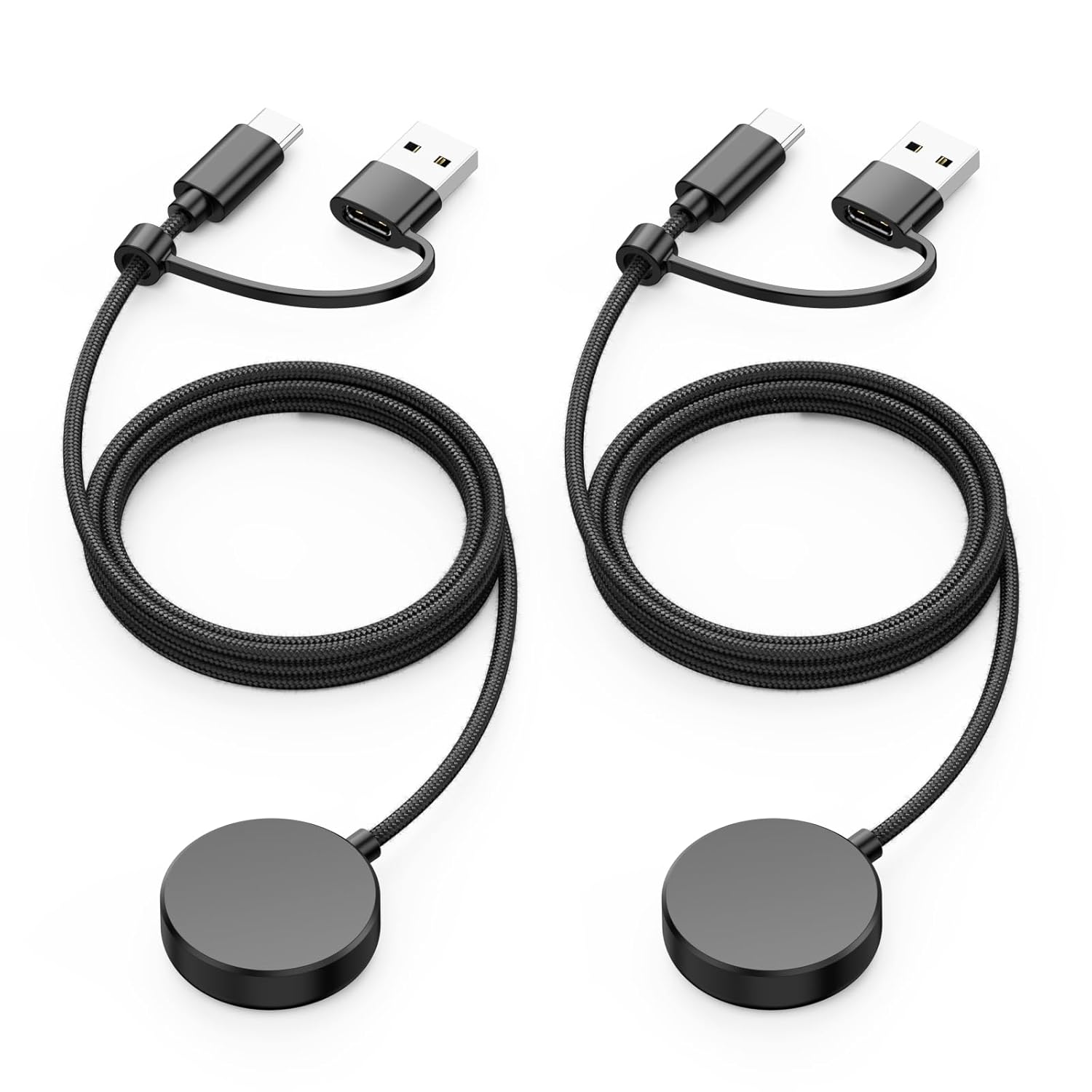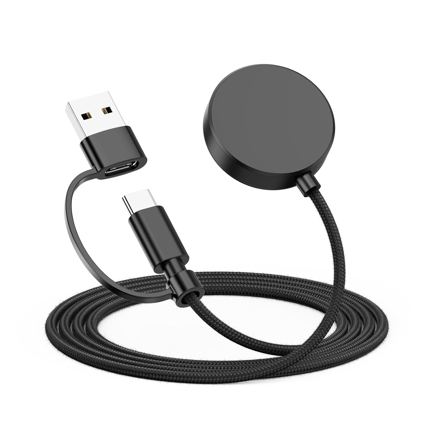 Заряден кабел за Samsung Galaxy Watch 7/6/6 Classic/ 5/5 Pro/4/3/ Active, USB C магнитна станция за зареждане, найлонов кабел за зарядно за Galaxy Watch с адаптер Type-C към USB-A (опаковка от 1)