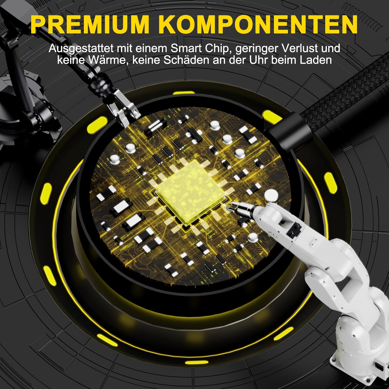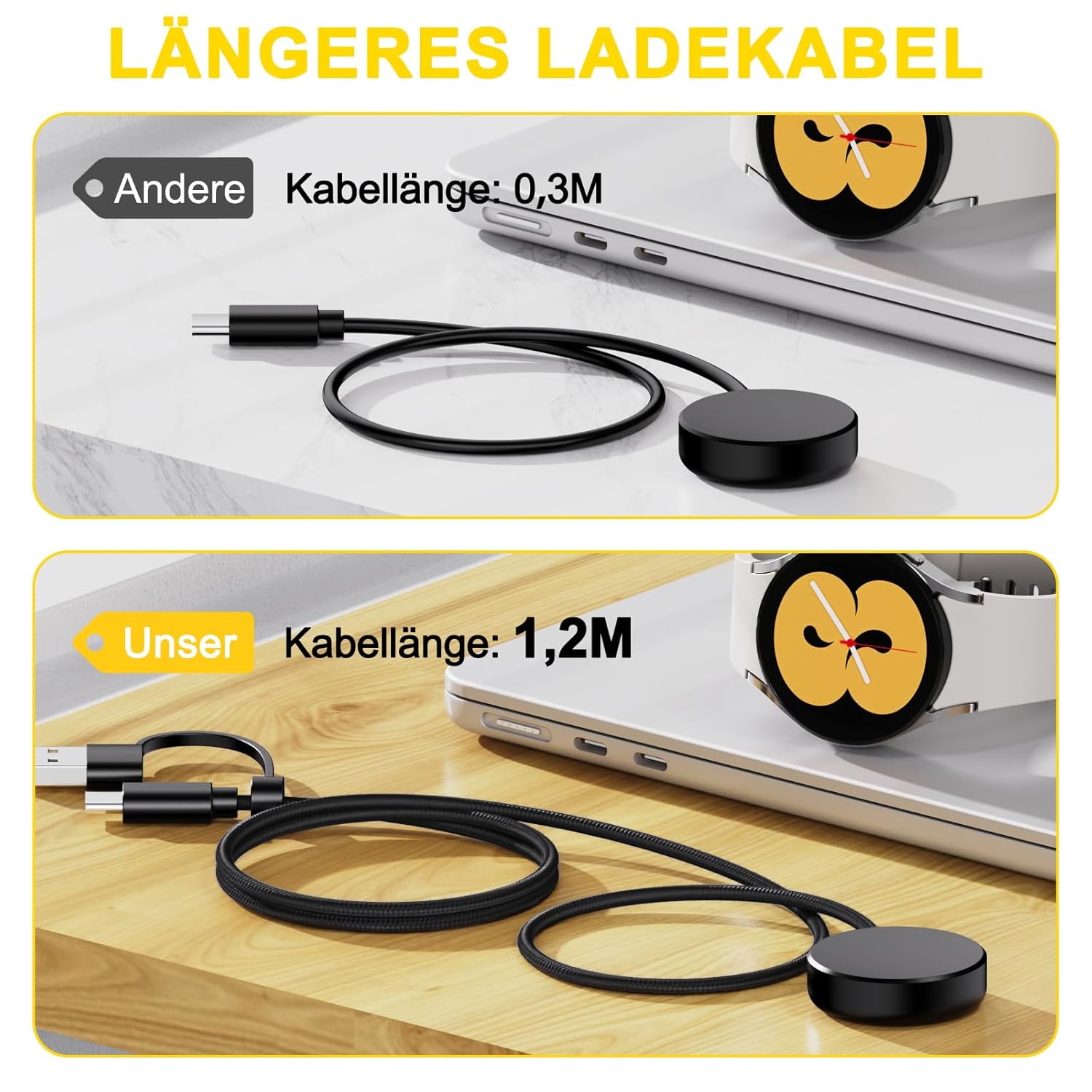 • Висококачествен материал: 1,2-метровият плетен кабел за зареждане на Galaxy Watch е изработен от висококачествен, плетен найлонов материал. В сравнение с конвенционалните PVC кабели за зареждане, той е по-дълъг и има по-висока якост на опън и устойчивост на износване, което го прави по-издръжлив, гъвкав и огъваем, като по този начин осигурява по-добро потребителско изживяване. Компактно и леко, това зарядно за Galaxy Watch отговаря на вашите нужди у дома, в офиса и в движение.