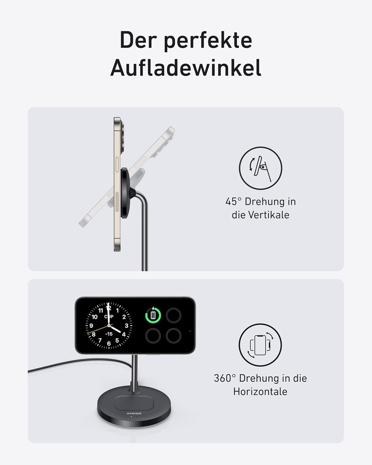 • Намерете идеалния ъгъл на зареждане: Благодарение на функцията за въртене от 45° вертикално и 360° хоризонтално, можете да регулирате ъгъла на зареждане индивидуално.