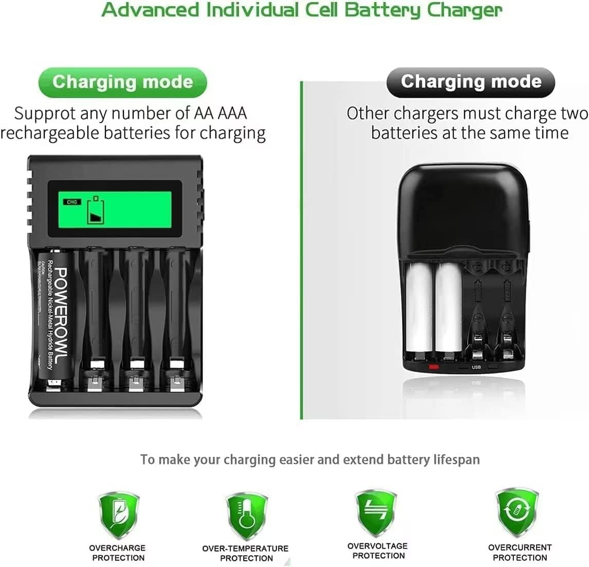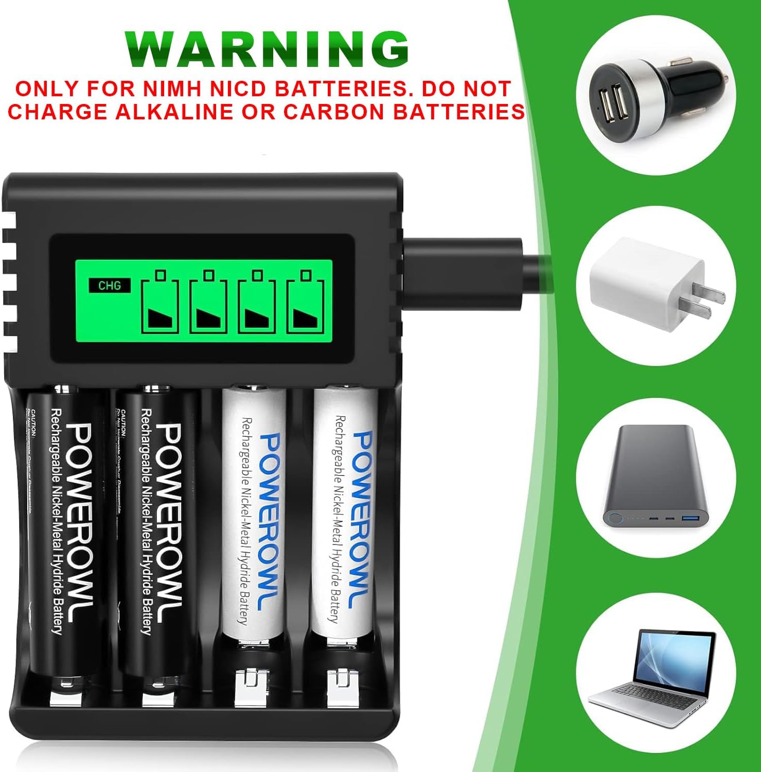 Зарядно устройство POWEROWL за батерии AA AAA, HD LCD дисплей, зарядно устройство за батерии NI-MH NI-CD AAA AA акумулаторни батерии