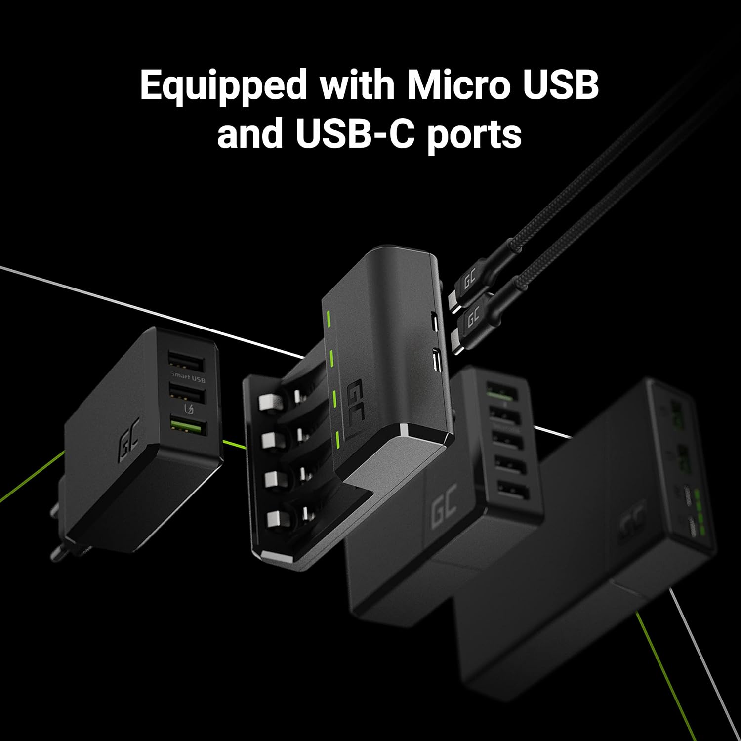 Зарядно устройство за батерии Green Cell VitalCharger с Micro USB и USB-C за NI-MH AA / AAA / R6 / R03 Mignon батерии. 4-канална система за зареждане - зарежда от 1 до 4 AA или AAA батерии, LED сигнализация.
