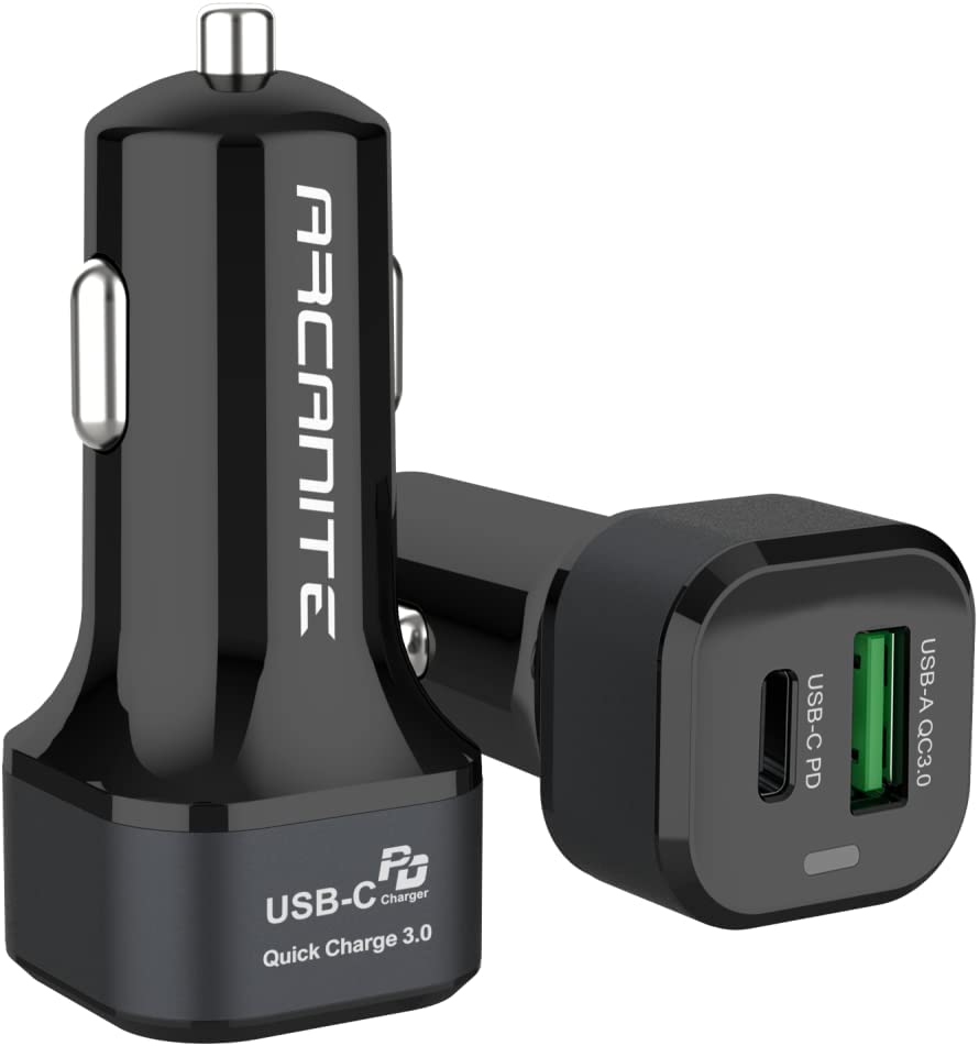 Зарядно за кола ARCANITE, USB-C PD3.0 (27W), USB-A QC3.0 (18W), Черно
