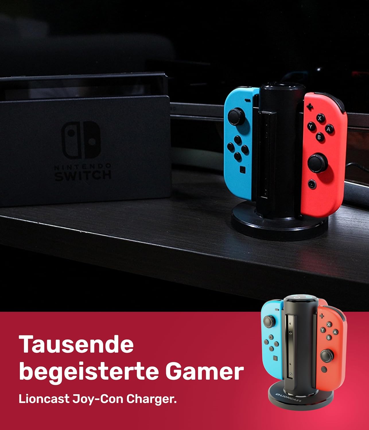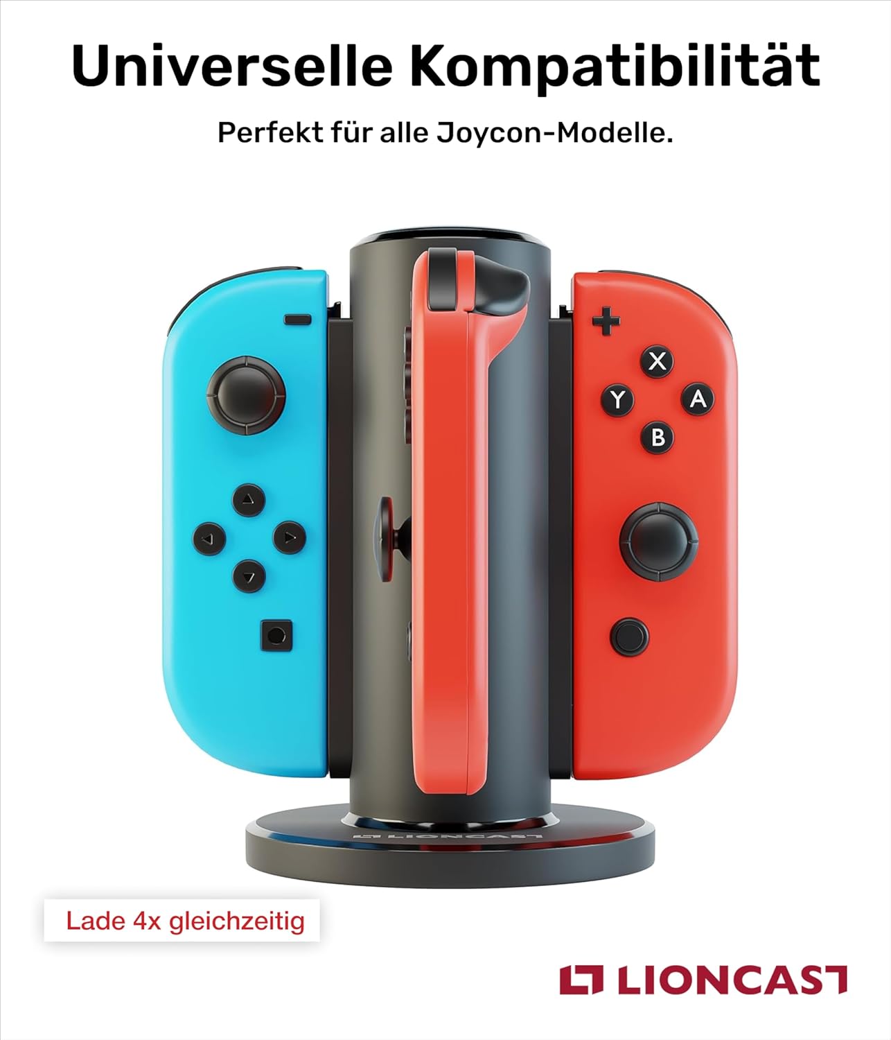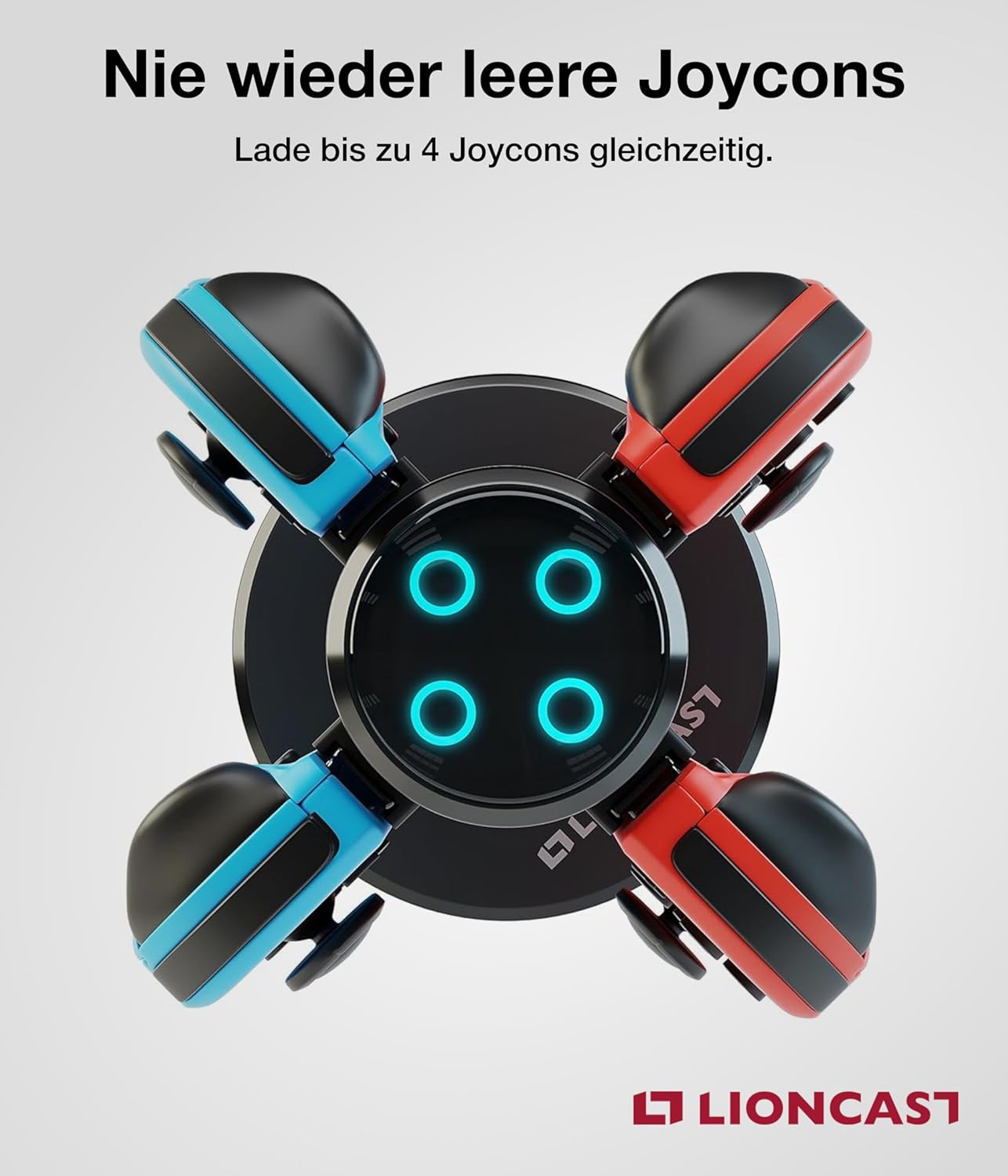 Зарядно за Lioncast Joy-Con Quad за Nintendo Switch, станция за зареждане на контролери със стабилна стойка, станция за зареждане на Switch с LED индикатор за зареждане
