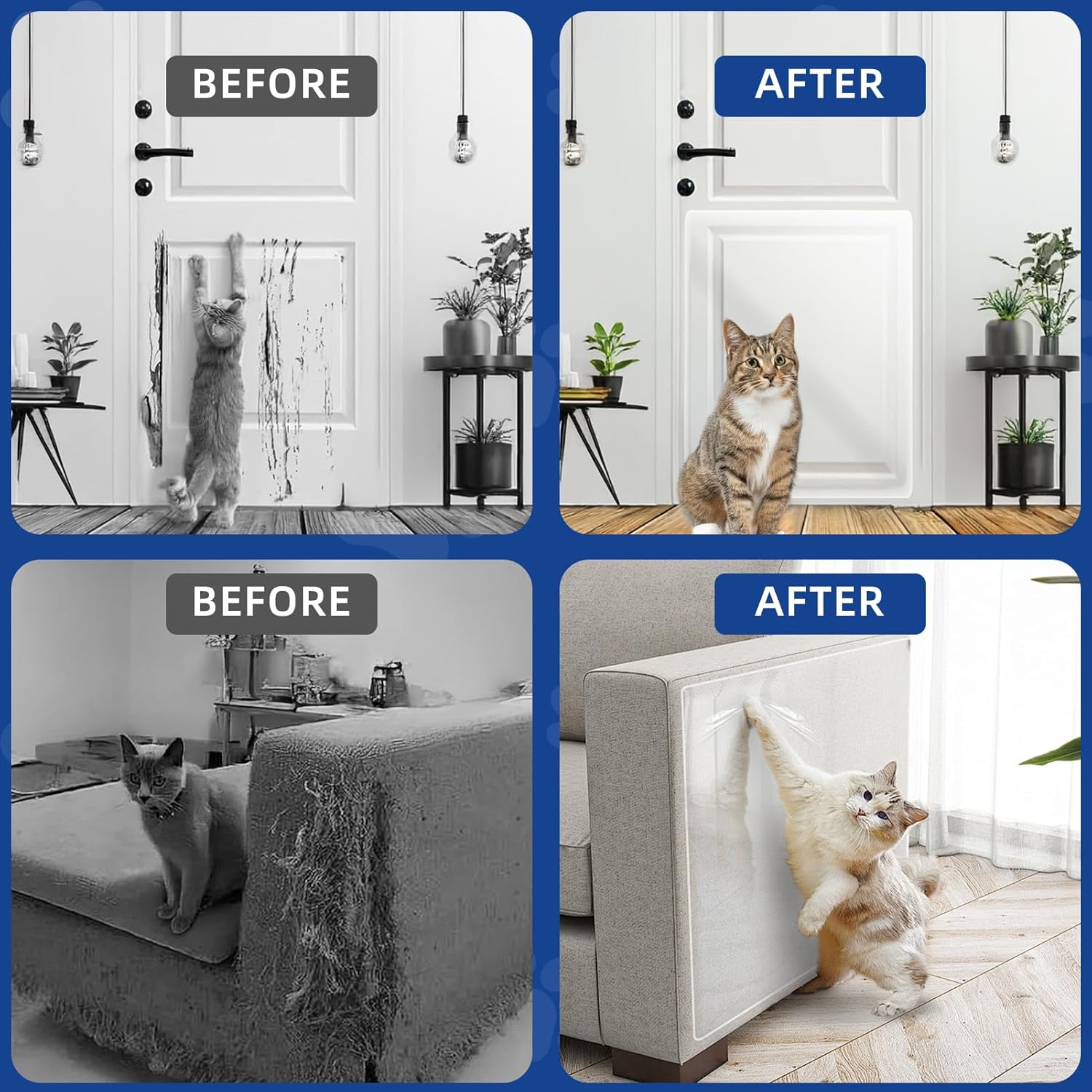 The generous roll size of this transparent PVC sofa scratch protection cat is 16.5 x 196.9 inches and is perfect for protecting large areas of sofas, chairs, walls and doors. Ideal for homes with multiple cats.