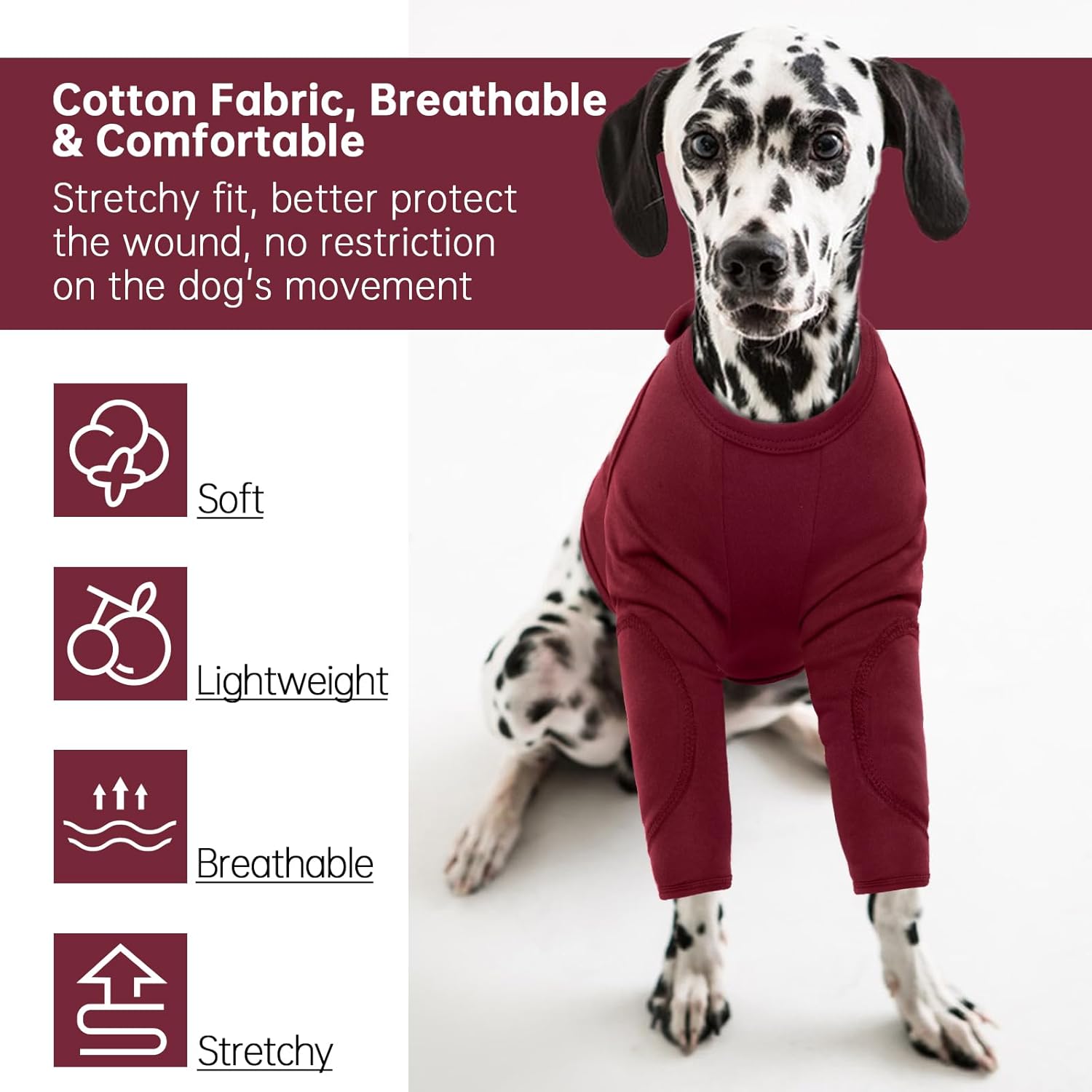 • 【Защита за предните крака】Нашият костюм за възстановяване на кучета е изработен от мек, еластичен памук, който се приспособява към тялото на вашето куче, осигурявайки оптимален комфорт и защита. Протекторите за крака могат да предотвратят облизването на кучетата и да предпазят ставите, раните, огнищата, инфекциите и кожните проблеми.