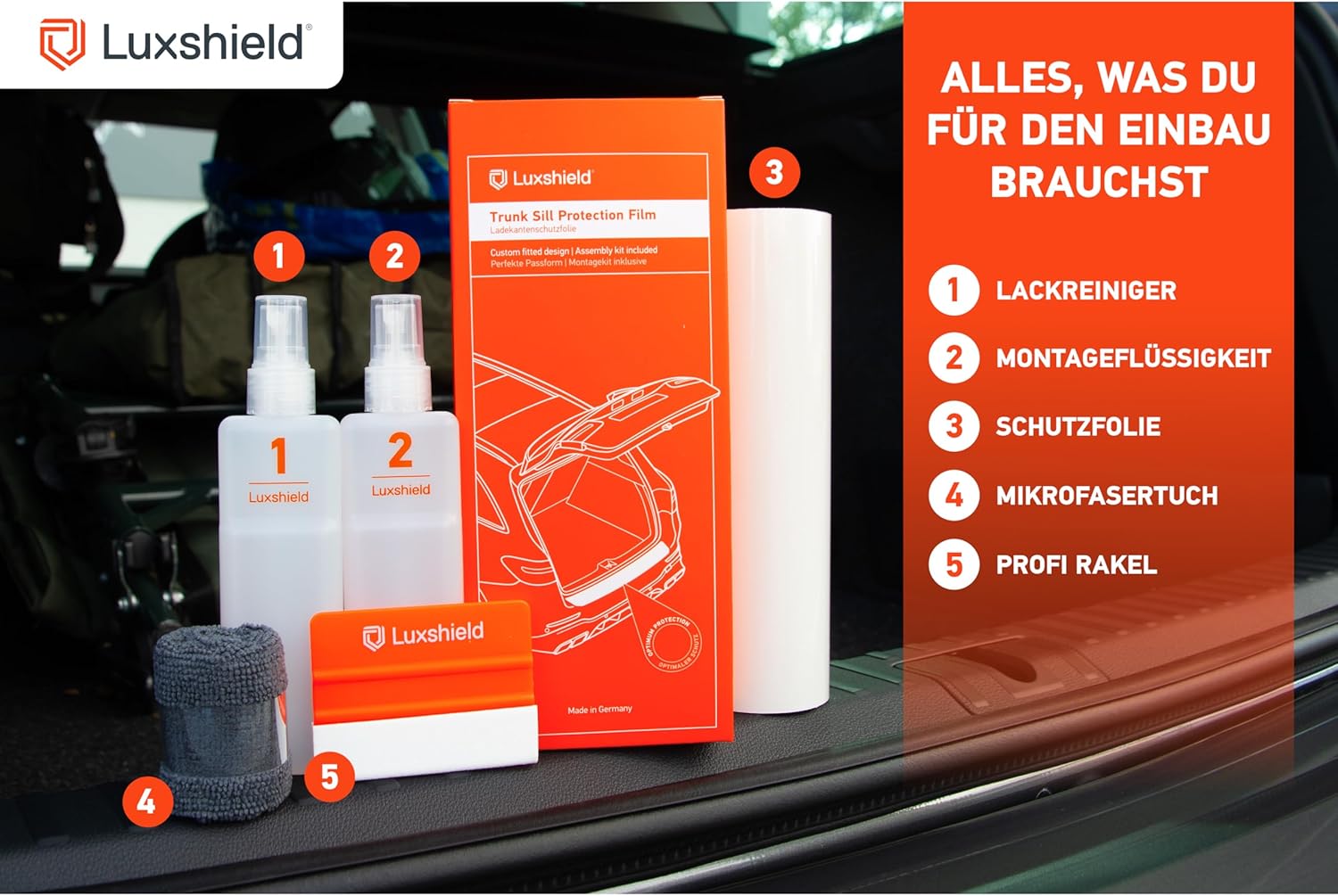• Пълен комплект: с нашия практичен комплект аксесоари можете да започнете веднага след разопаковане. Съдържа: микрофибърна кърпа, почистващ препарат за боя, монтажна течност, гумена шпатула