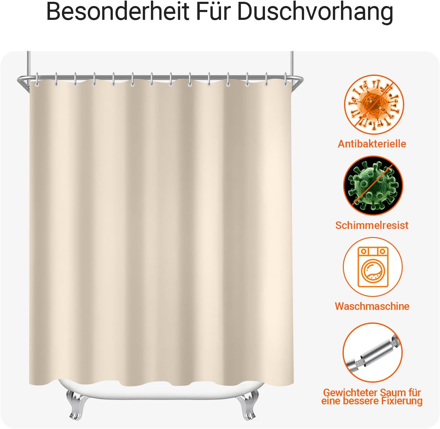 • Лесен монтаж: Тази завеса за душ е снабдена с 12 пластмасови кукички, включените кукички позволяват лесно окачване на тази завеса за баня. Долен подгъв с тежести: Допълнителен шев с надеждно закрепен подгъв в долната част. Включете струята под високо налягане. Предотвратете залепването на завесата за баня по тялото ви, когато се къпете.