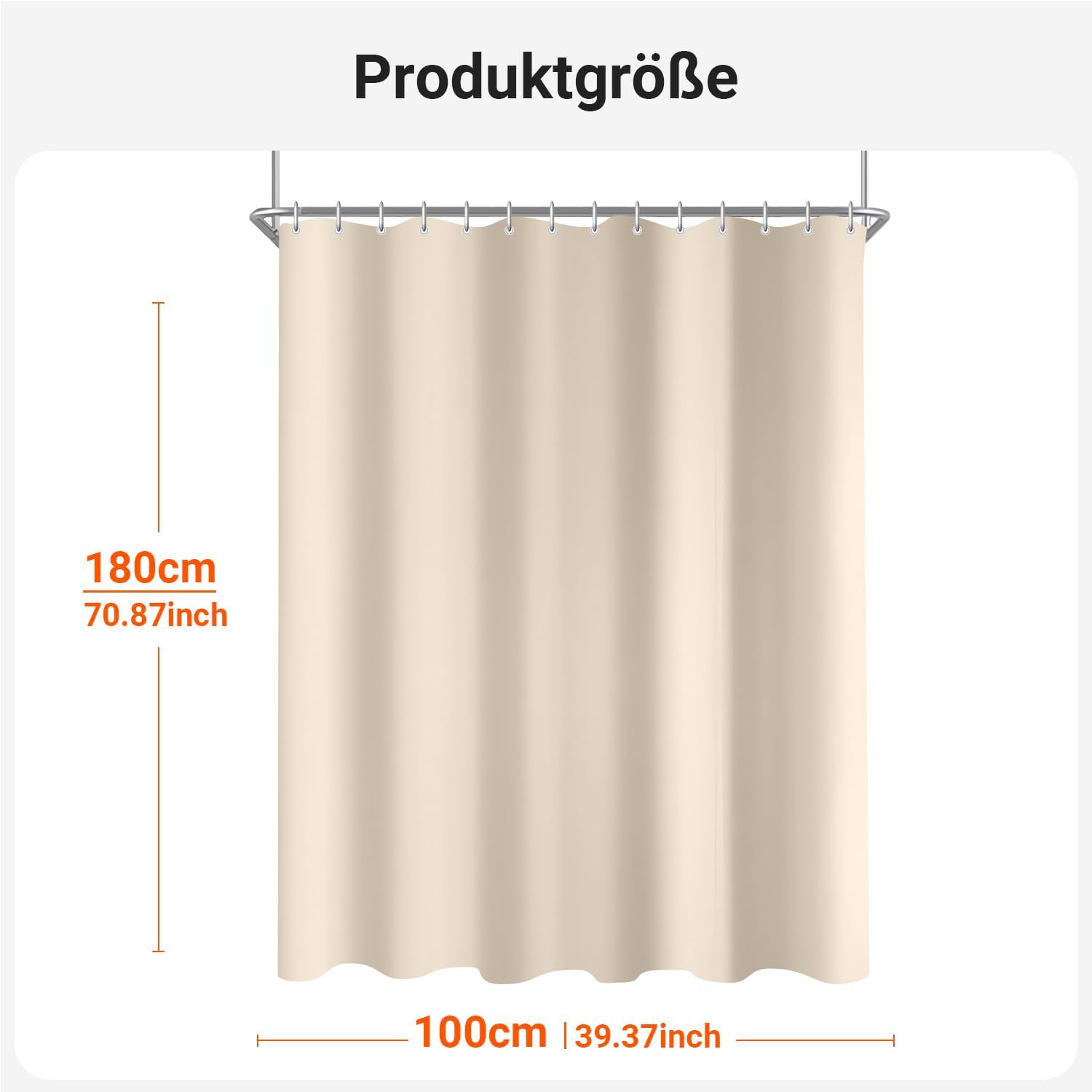 Завеса за душ, 100 x 180 см, бежова, с утежнен подгъв, текстил против мухъл, водоотблъскващ, полиестерна материя, която може да се пере, завеса за баня, вана с 8 халки за завеса за душ