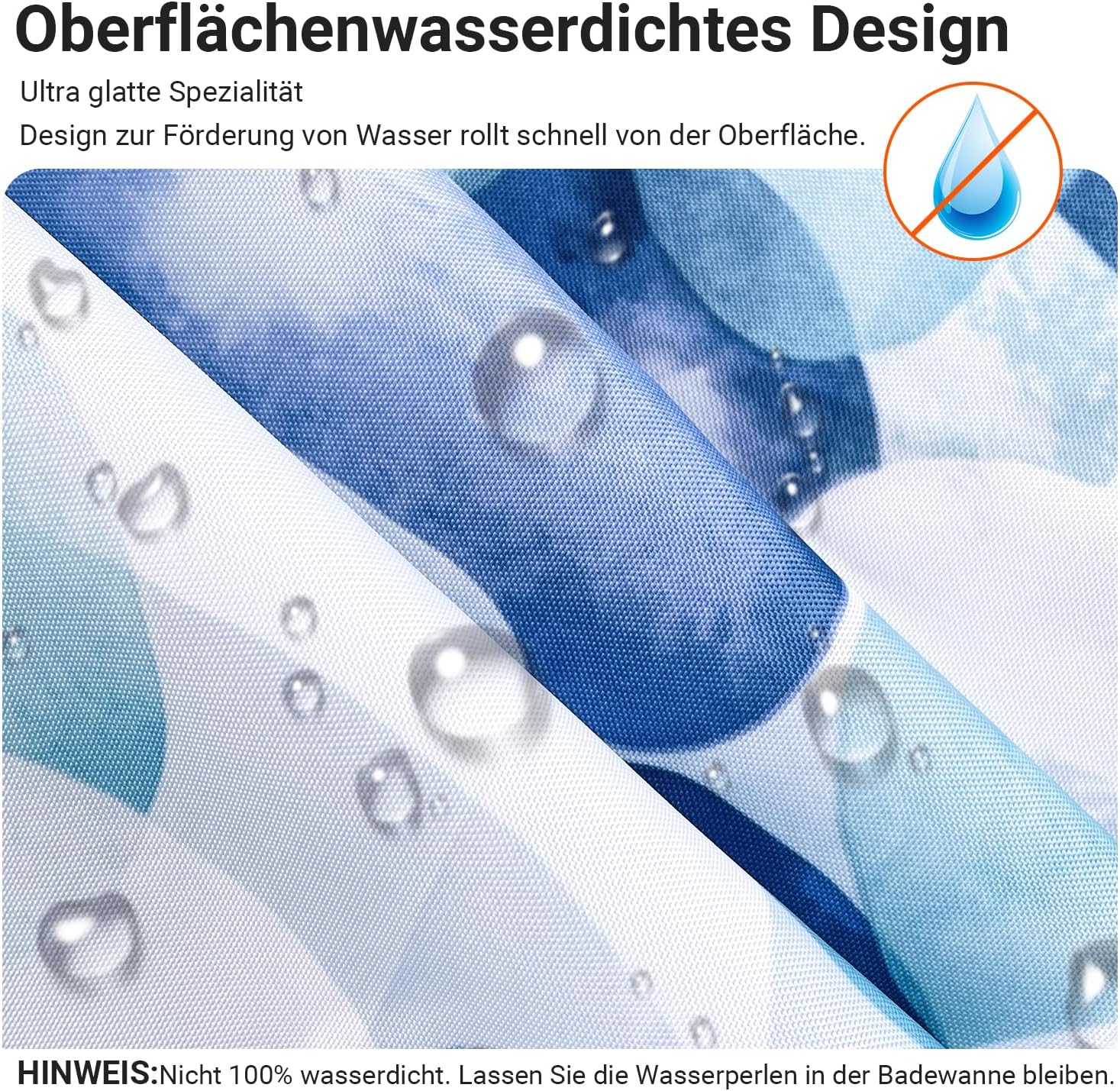 • Противомушълно и водоустойчиво покритие: Ултрагладък специален дизайн, създаден да устои на вода и да насърчава образуването на водни капчици, водата може лесно да се образува върху завесата за душ. За да предотвратите образуването на мухъл, уверете се, че водните капчици остават във ваната. Не е 100% водоустойчиво.