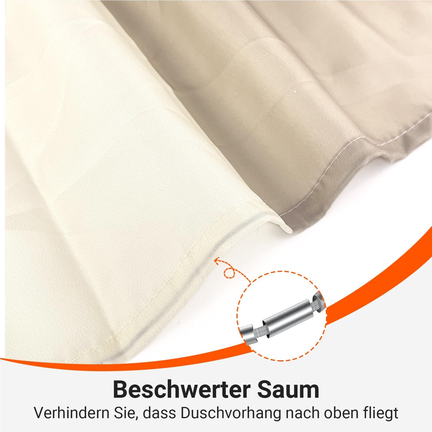 • Лесен монтаж: Тази завеса за душ е снабдена с 12 пластмасови кукички, включените кукички позволяват лесно окачване на тази завеса за баня. Долен подгъв с тежести: Допълнителен шев с надеждно закрепен подгъв в долната част. Включете струята под високо налягане. Предотвратете залепването на завесата за баня по тялото ви, когато се къпете.