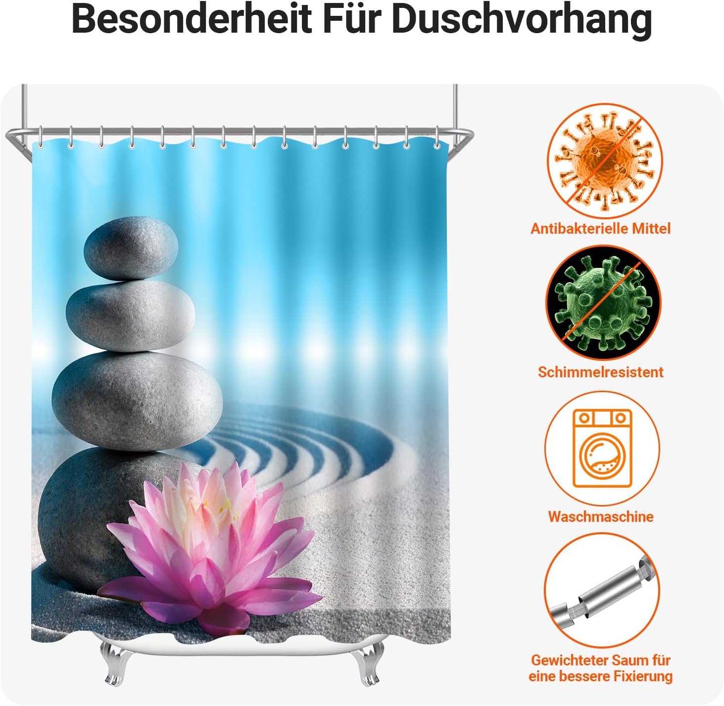 • Лесен монтаж: Тази завеса за душ е снабдена с 12 пластмасови кукички, включените кукички позволяват лесно окачване на тази завеса за баня. Долен подгъв с тежести: Допълнителен шев с надеждно закрепен подгъв в долната част. Включете струята под високо налягане. Предотвратете залепването на завесата за баня по тялото ви, когато се къпете.