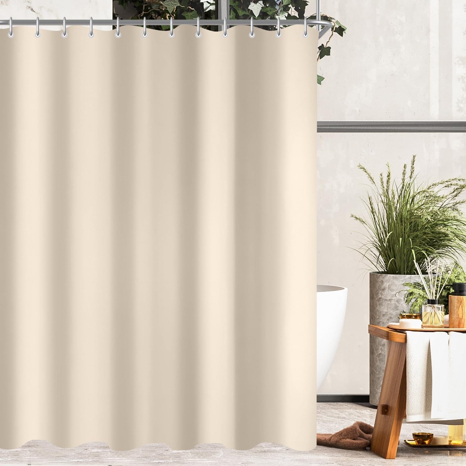 Завеса за душ, 150 x 160 см, бежова, с утежнен подгъв, текстил против мухъл, водоотблъскващ, полиестерна материя, която може да се пере, завеса за баня, вана с 12 халки за завеса за душ