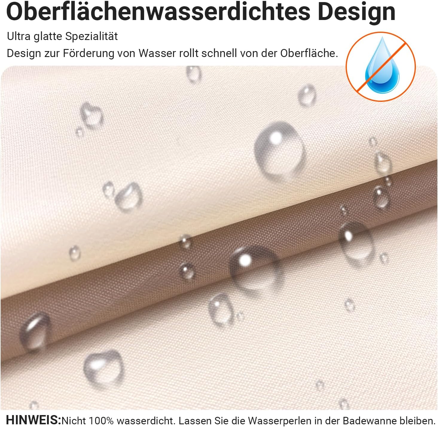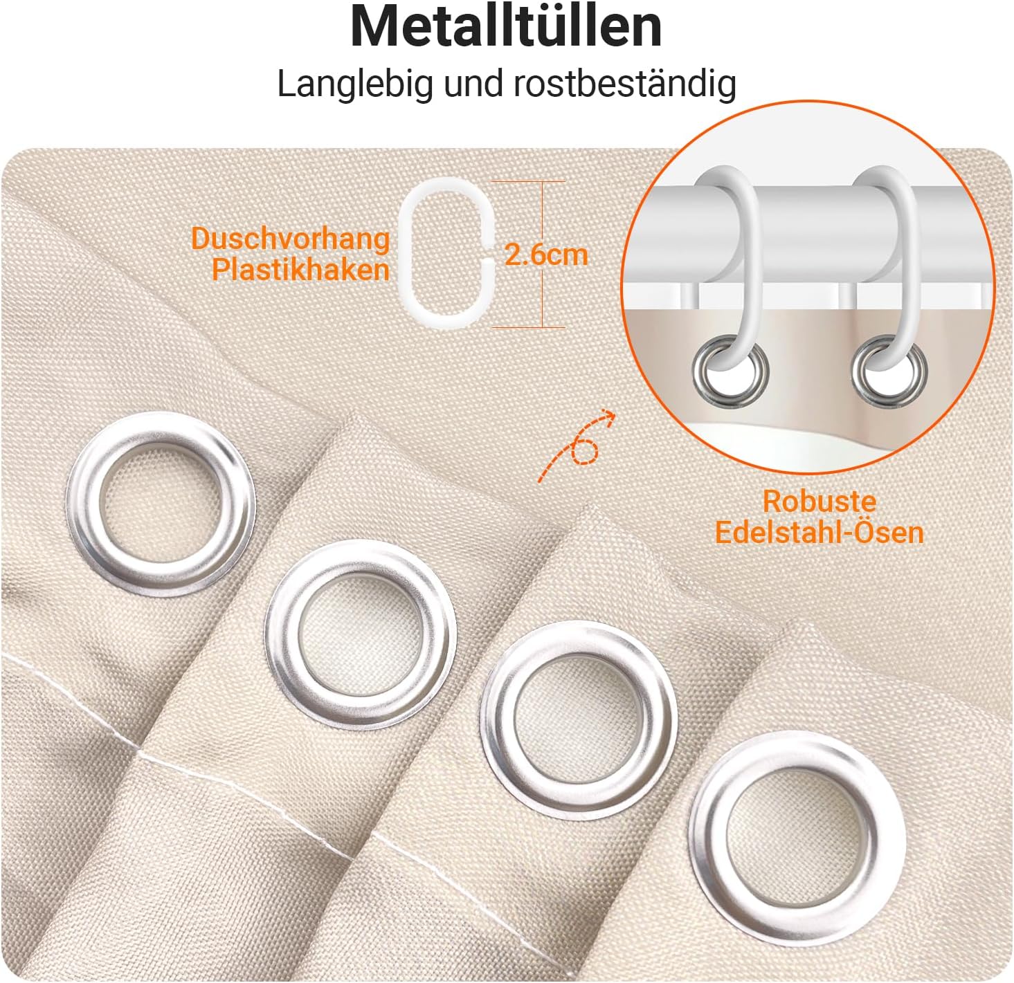 • Лесен монтаж: Тази завеса за душ е снабдена с 12 пластмасови кукички, включените кукички позволяват лесно окачване на тази завеса за баня. Долен подгъв с тежести: Допълнителен шев с надеждно закрепен подгъв в долната част. Включете струята под високо налягане. Предотвратете залепването на завесата за баня по тялото ви, когато се къпете.