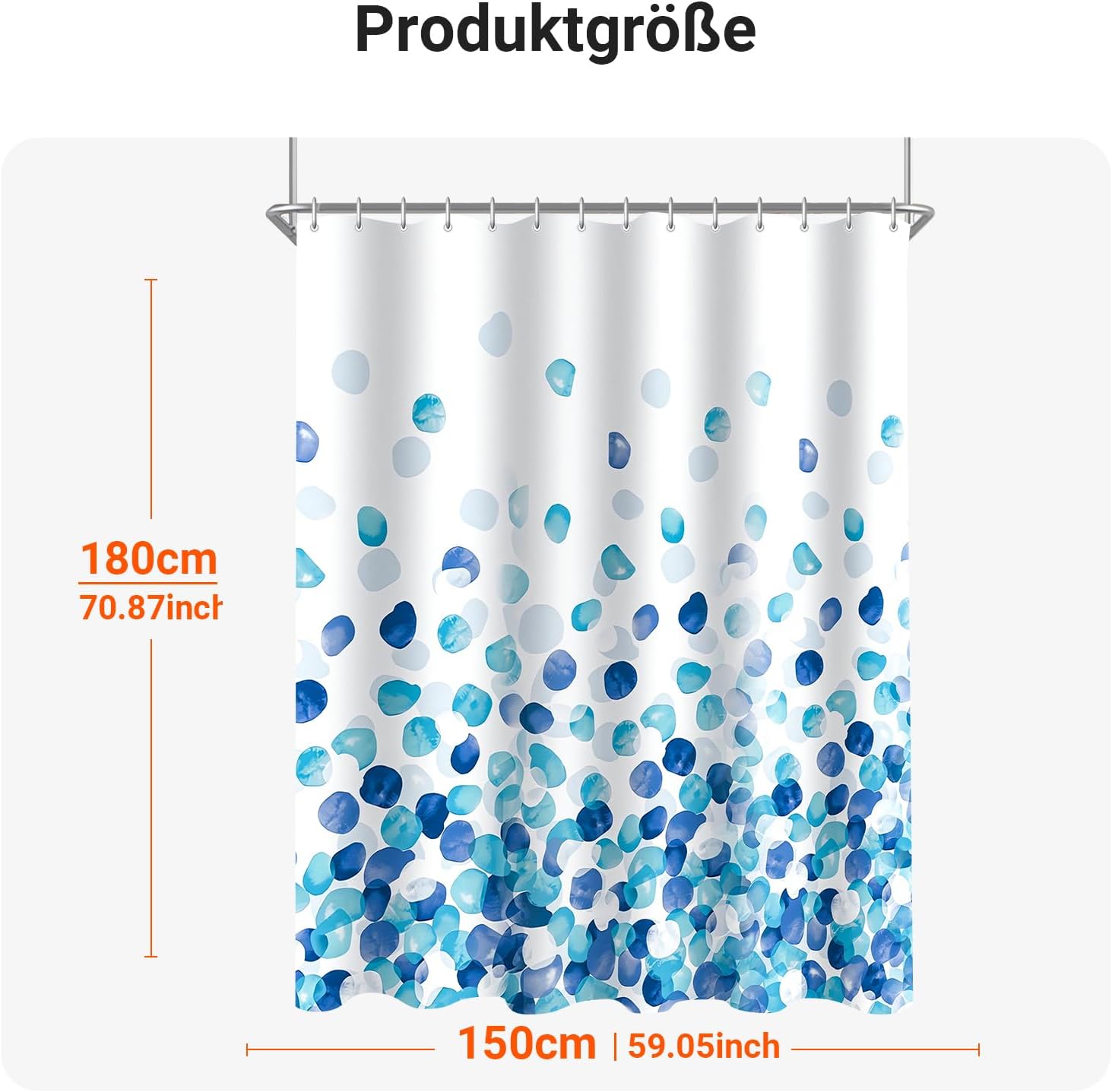 • Лесен монтаж: Тази завеса за душ е снабдена с 12 пластмасови кукички, включените кукички позволяват лесно окачване на тази завеса за баня. Долен подгъв с тежести: Допълнителен шев с надеждно закрепен подгъв в долната част. Включете струята под високо налягане. Предотвратете залепването на завесата за баня по тялото ви, когато се къпете.