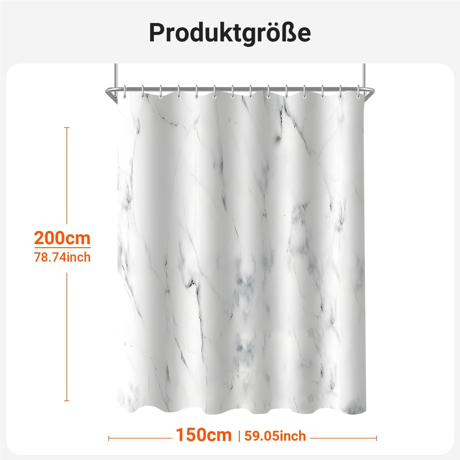 Завеса за душ, 150 x 200 см, мрамор, утежнен подгъв, текстил против мухъл, водоустойчива, полиестерна материя, която може да се пере, с 10 отвора и халки за завеса за душ за баня, вана